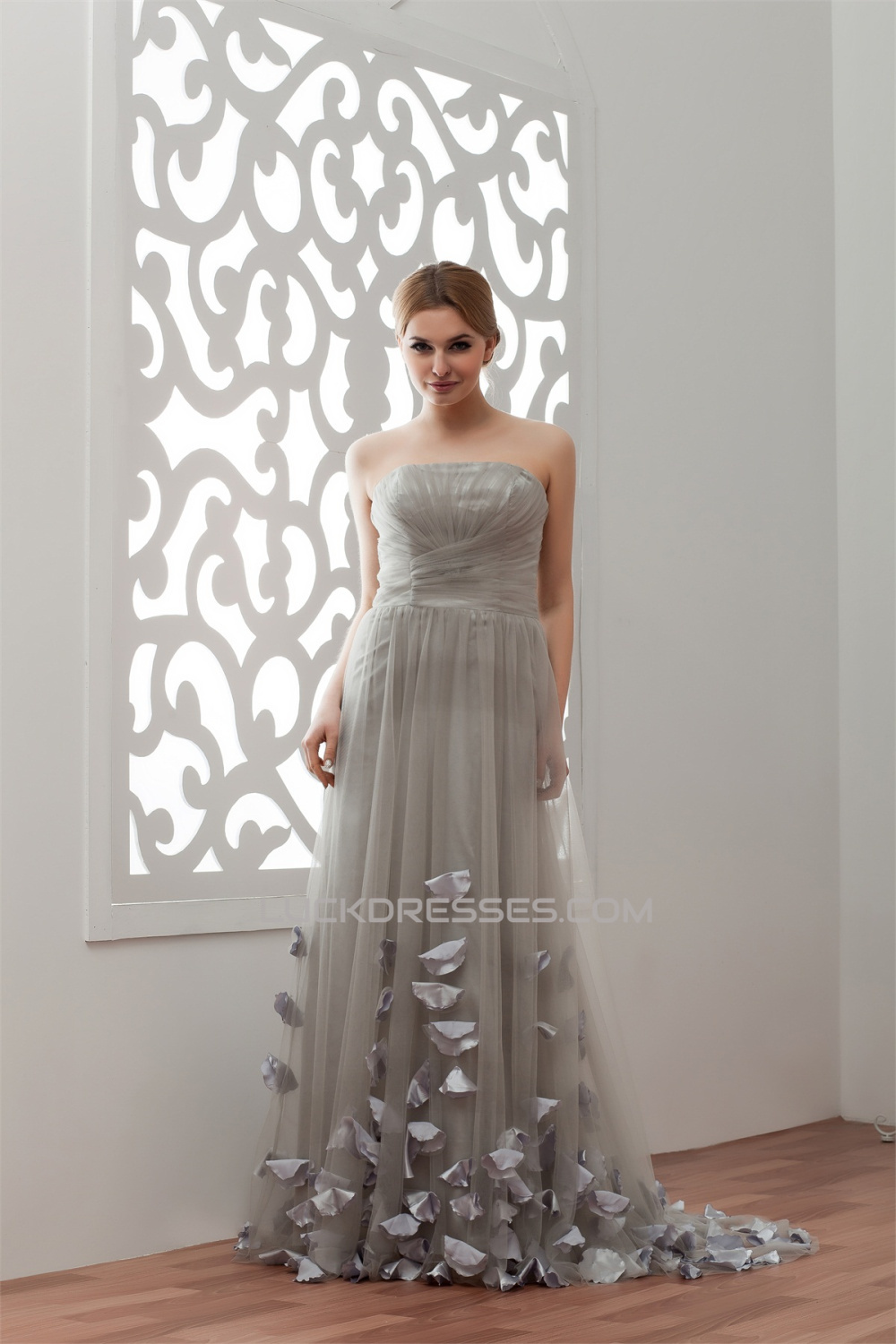 Handmade Flowers Sleeveless A-Line Satin Fine Netting Plus Size Prom/Formal Evening Dresses 02020531