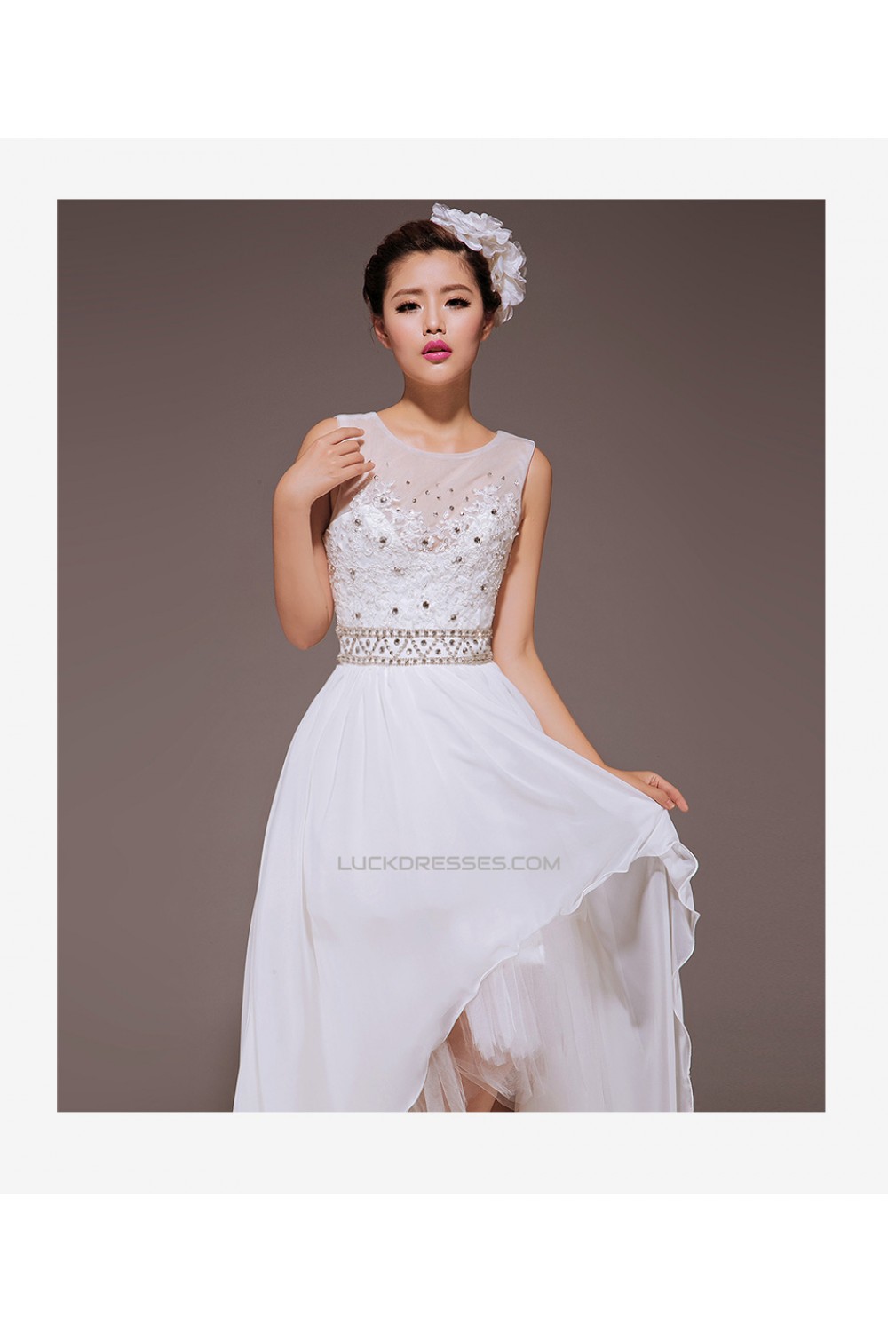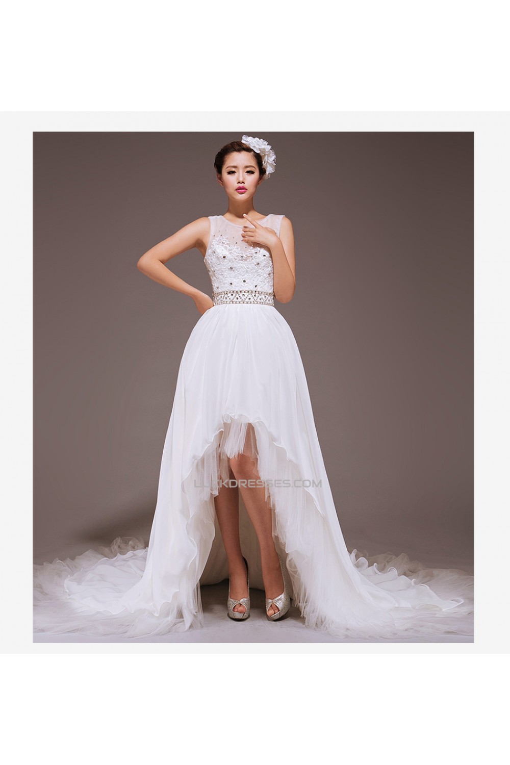 High Low Beaded Bridal Wedding Dresses WD010430