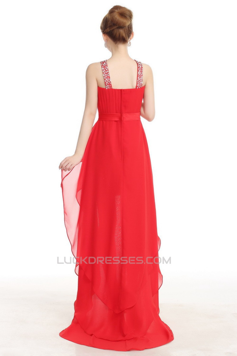 High Low Beaded Red Chiffon Prom Evening Formal Dresses ED011227