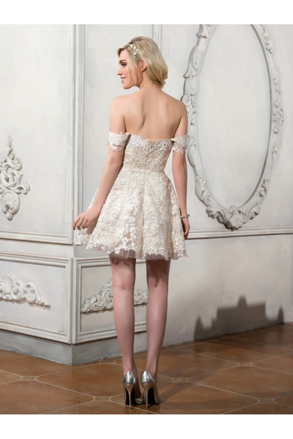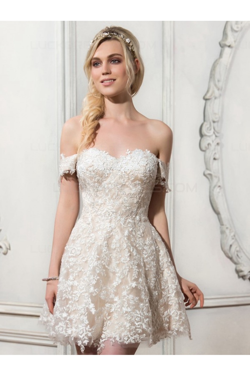 High Low Off-the-Shoulder Lace Wedding Dresses Bridal Gowns 3030153