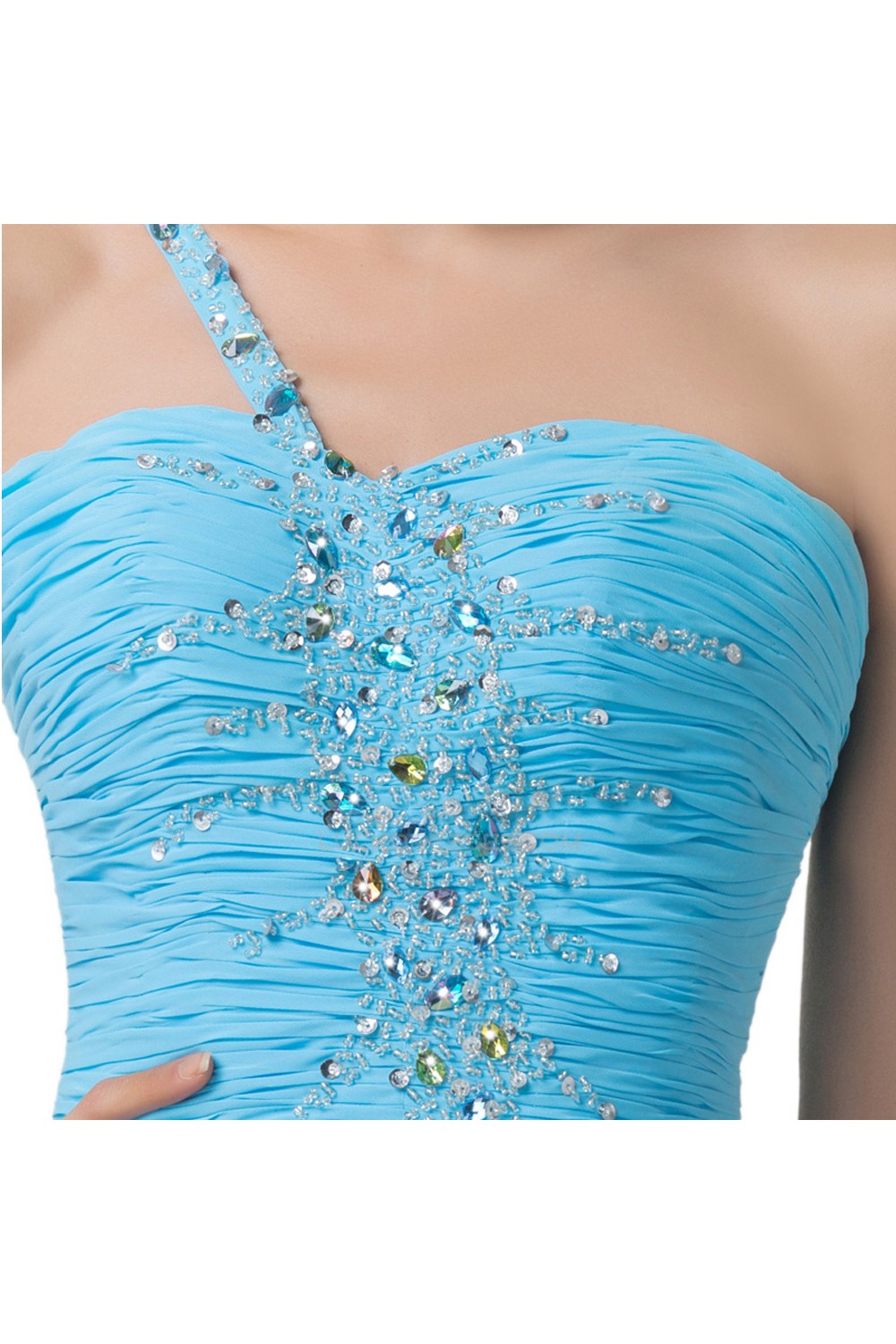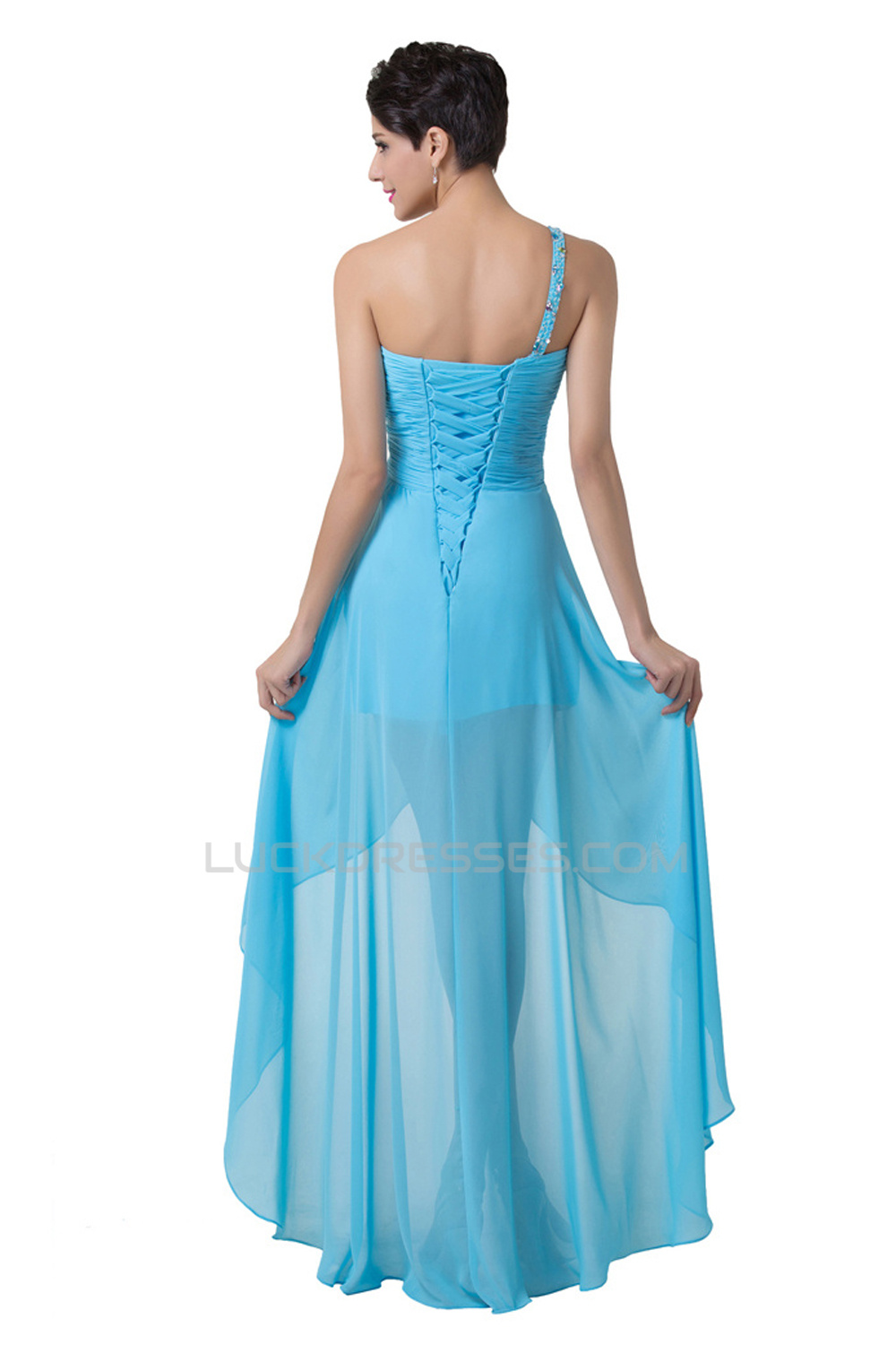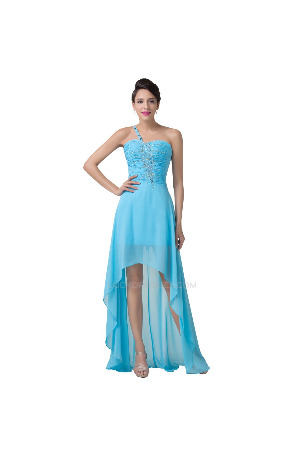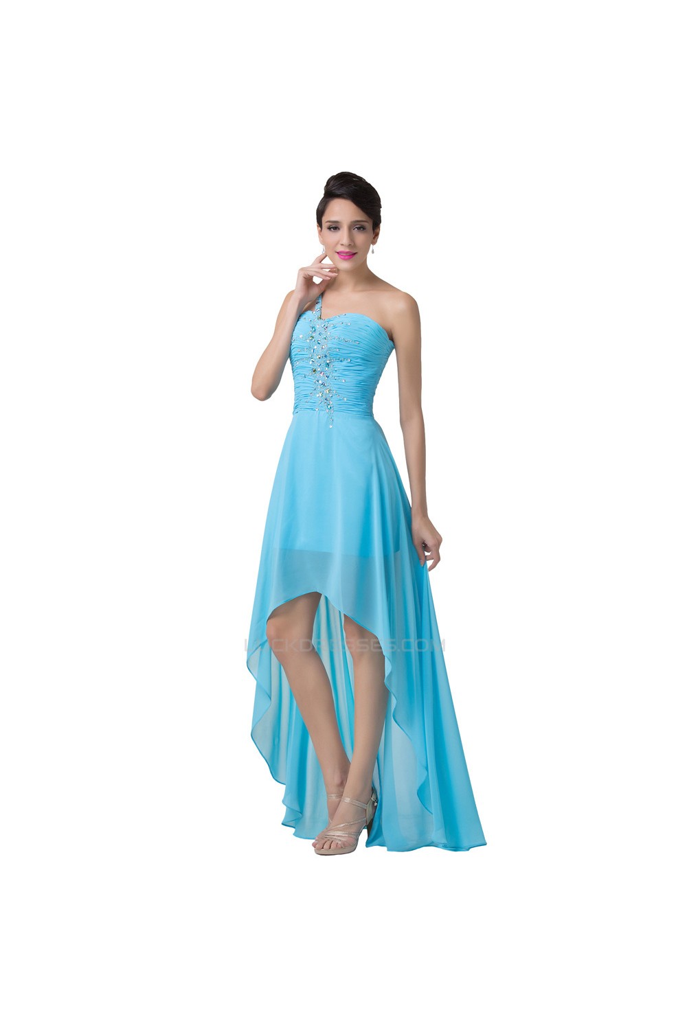 High Low One-Shoulder Short Beaded Chiffon Prom Evening Formal Dresses ED011642