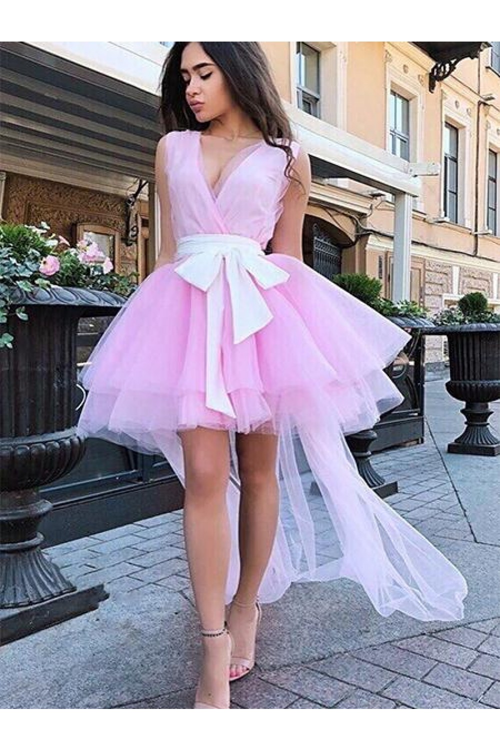 High Low Pink Prom Dress Homecoming Graduation Cocktail Dresses 701214
