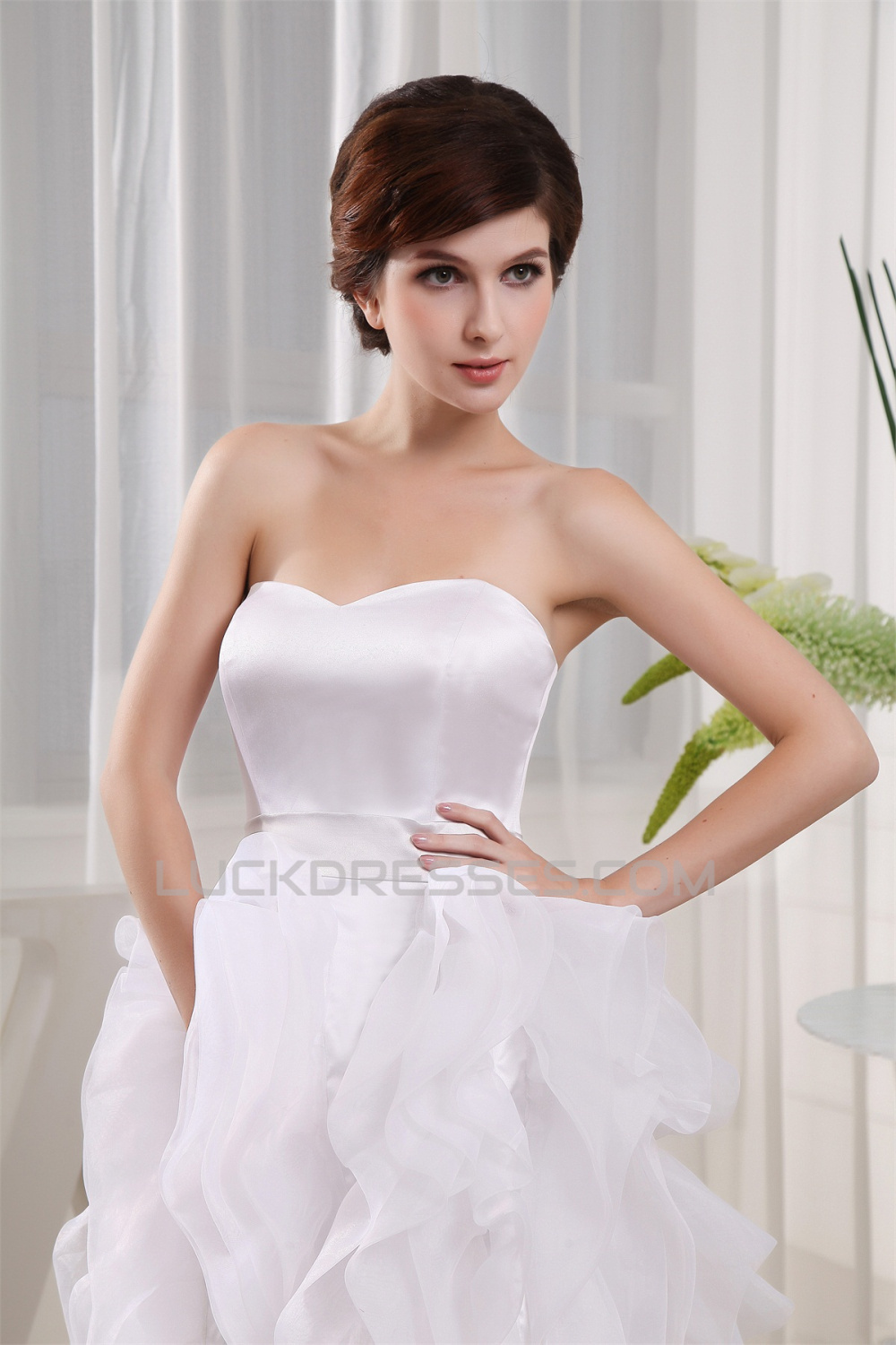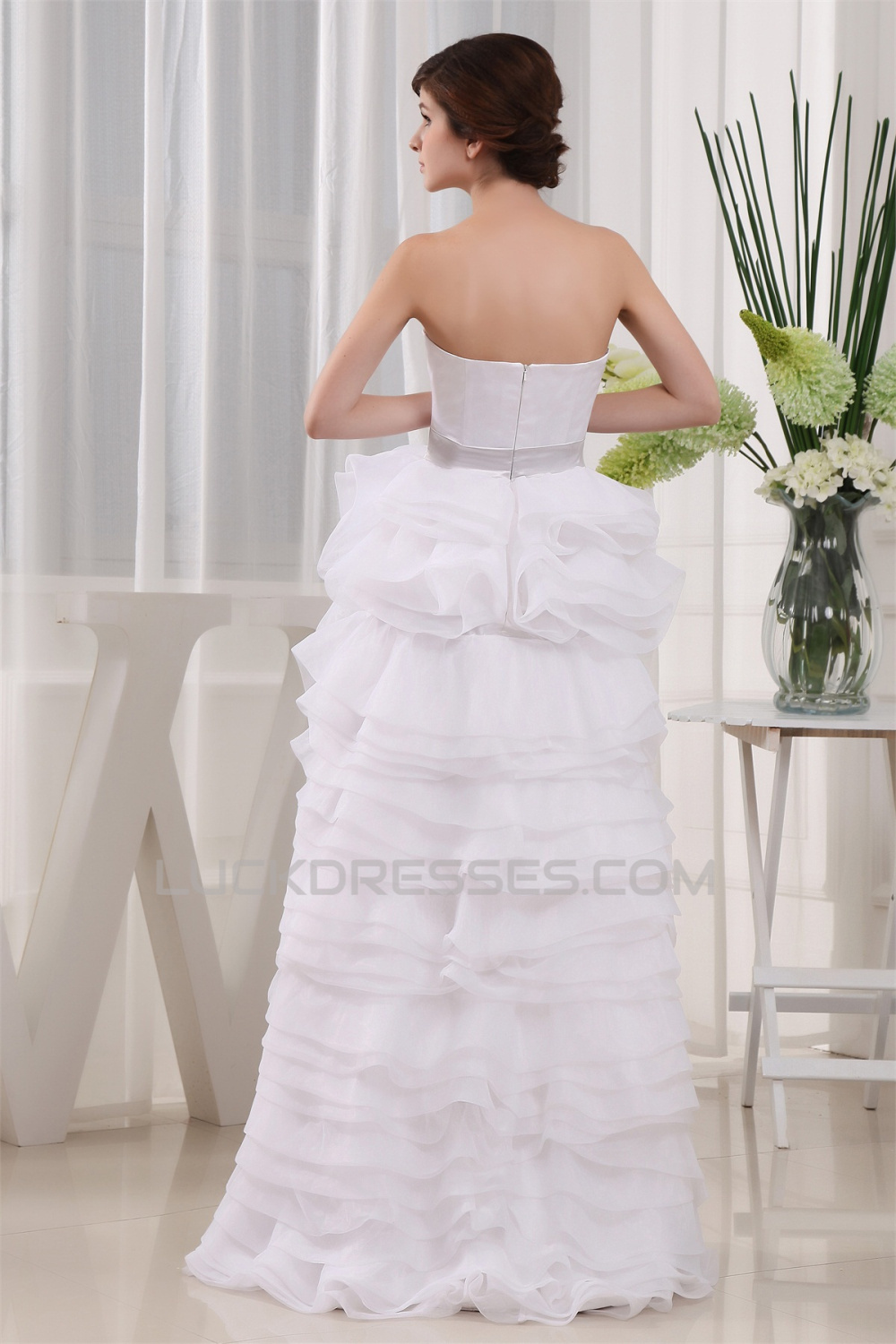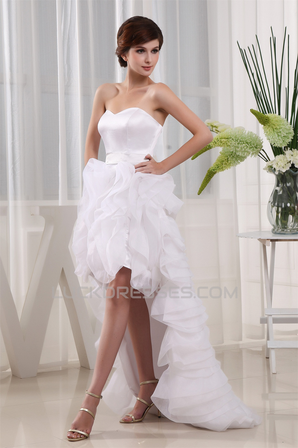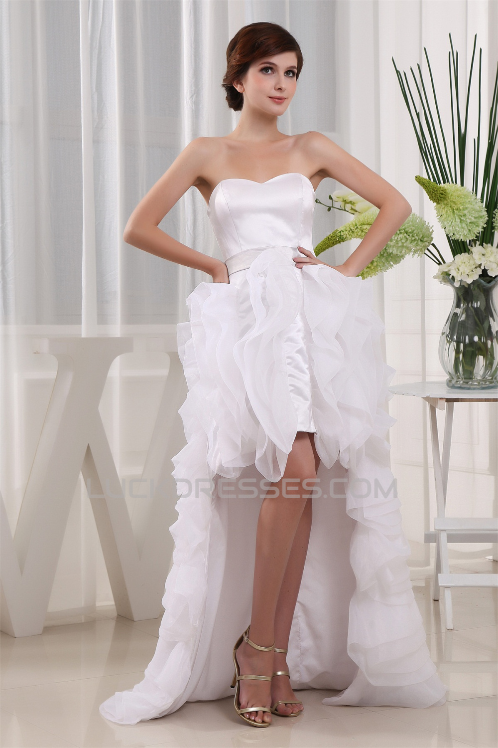 High Low Satin Organza Sleeveless Wedding Dresses 2031503