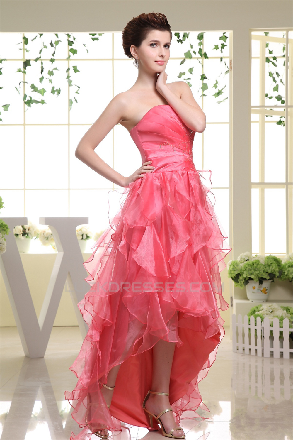 High Low Strapless Beading Asymmetrical Organza Prom/Formal Evening Dresses 02020402