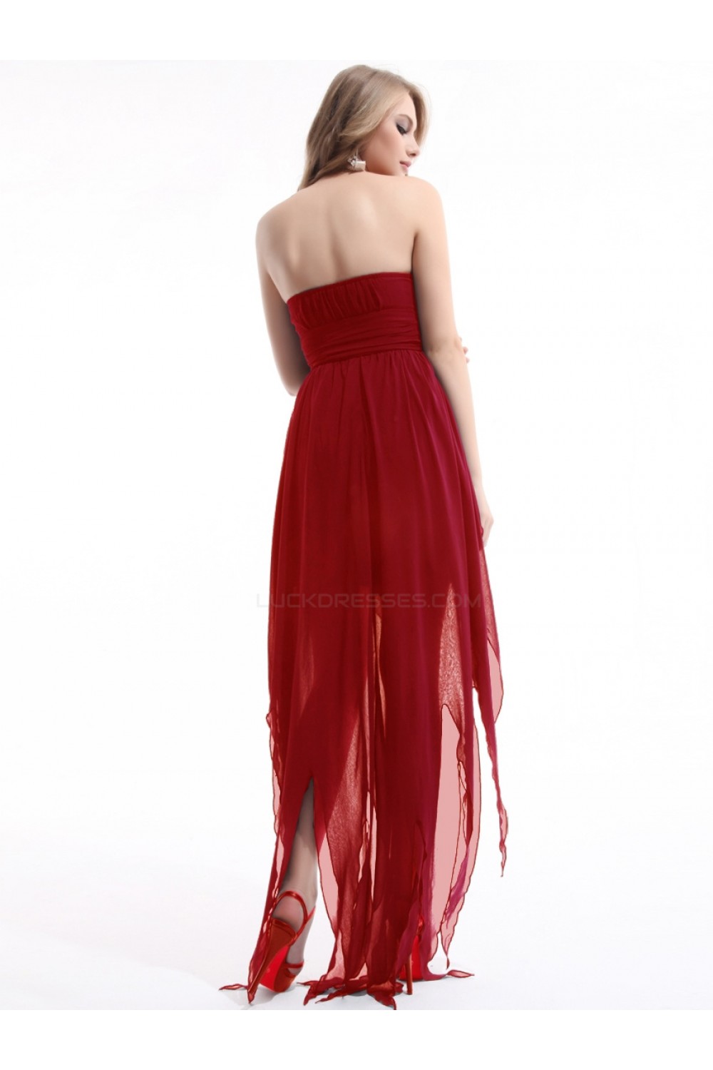 High Low Strapless Red Chiffon Bridesmaid Dresses/Evening Dresses BD010277