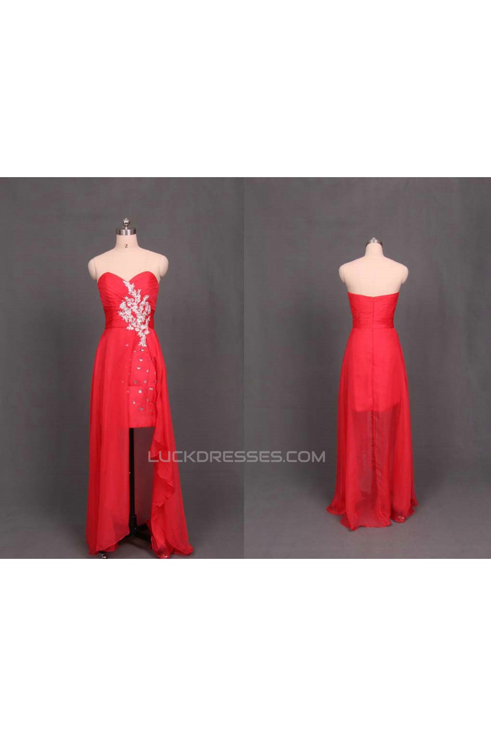 High Low Sweetheart Beaded Red Chiffon Prom Evening Formal Dresses ED011107