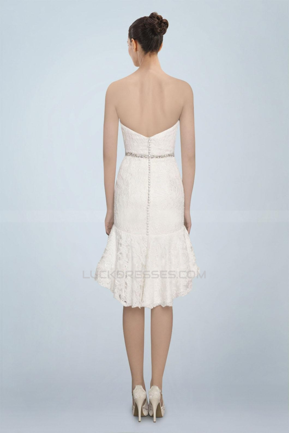 High Low Sweetheart Short Beaded Lace Bridal Wedding Dresses WD010374