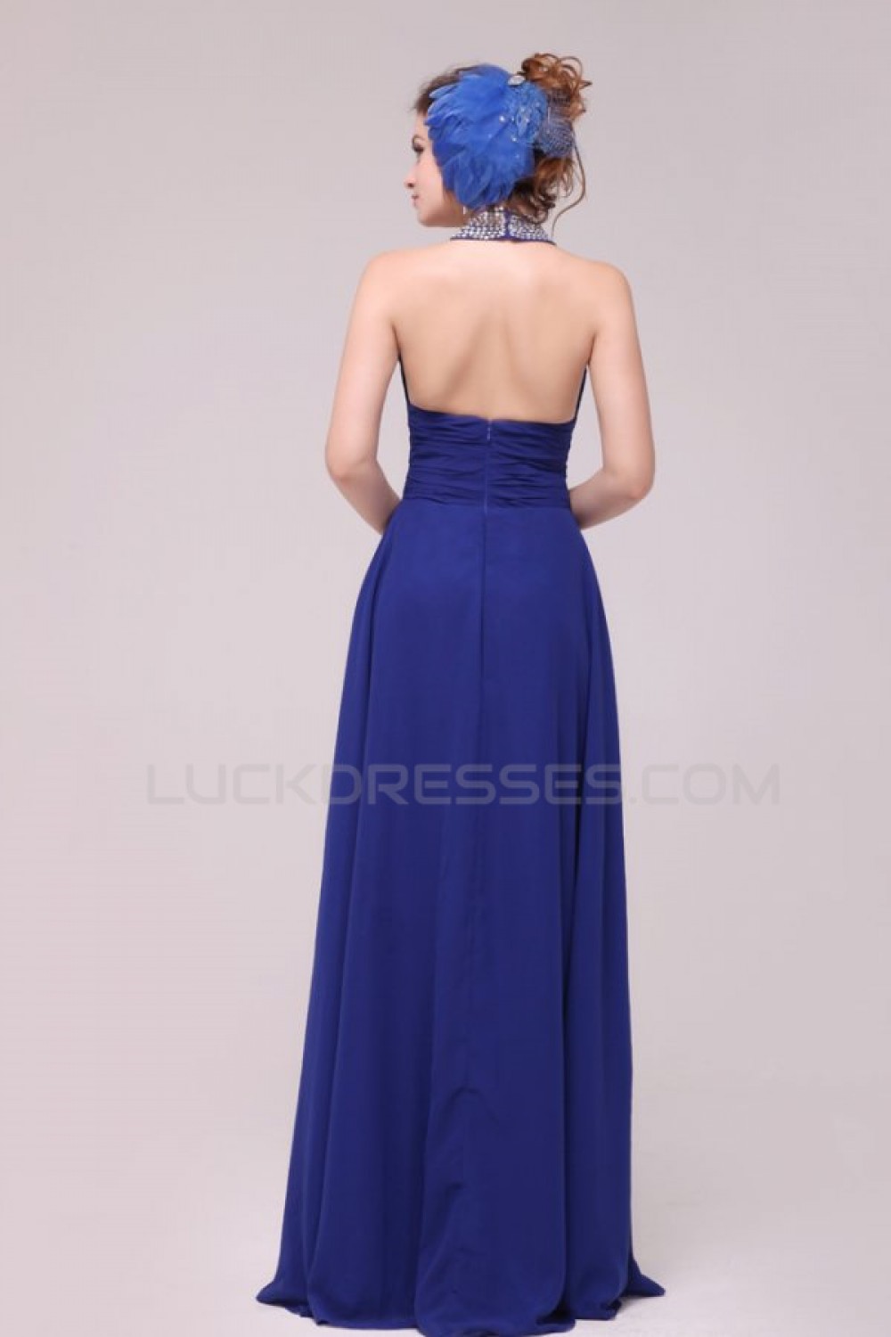 High Neck Halter Beaded Long Blue Chiffon Prom Evening Formal Party Dresses ED010187