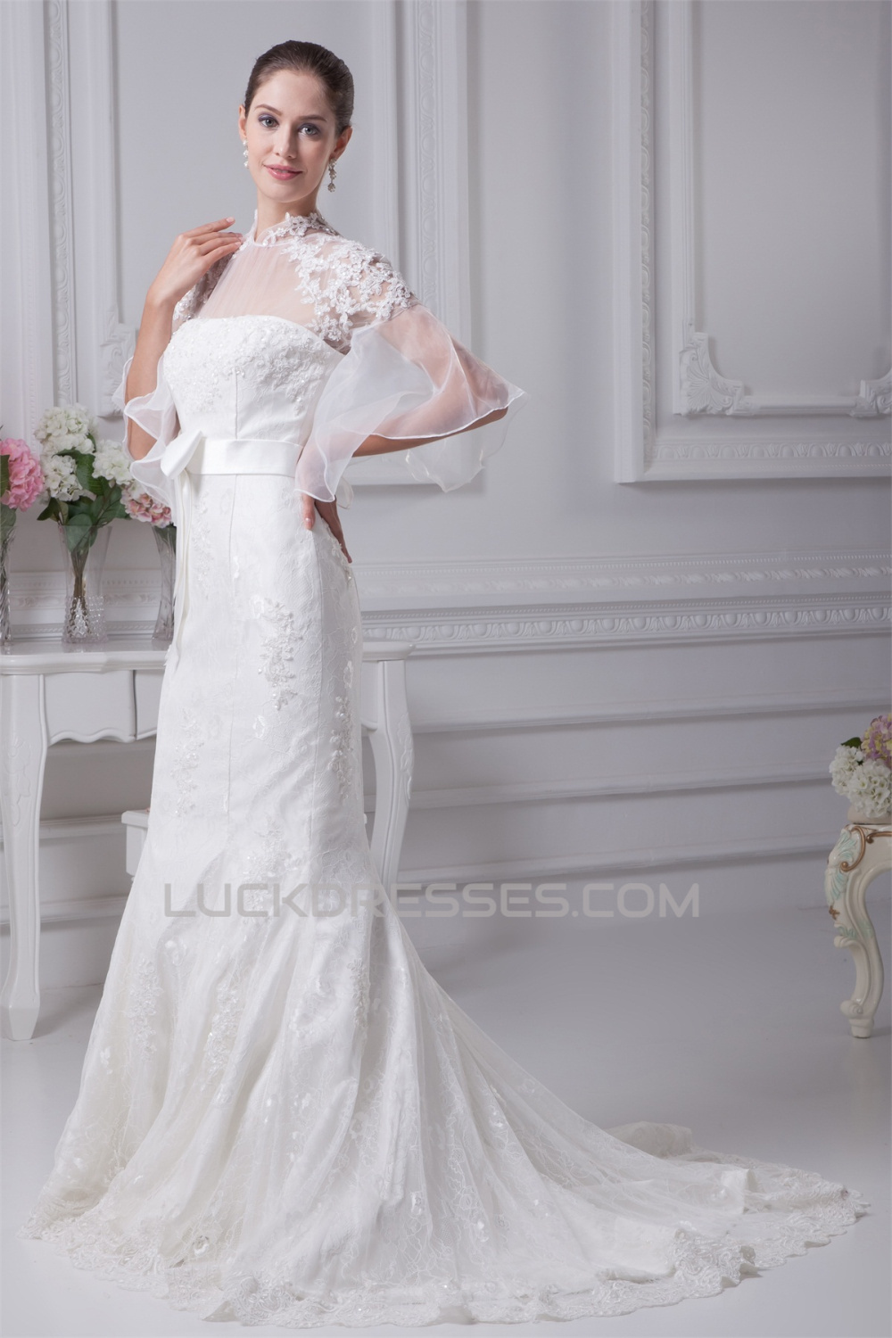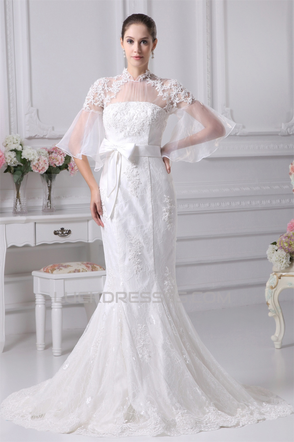 High-Neck Mermaid/Trumpet Half Elbow Sleeve Most Beautiful Wedding Dresses 2030174