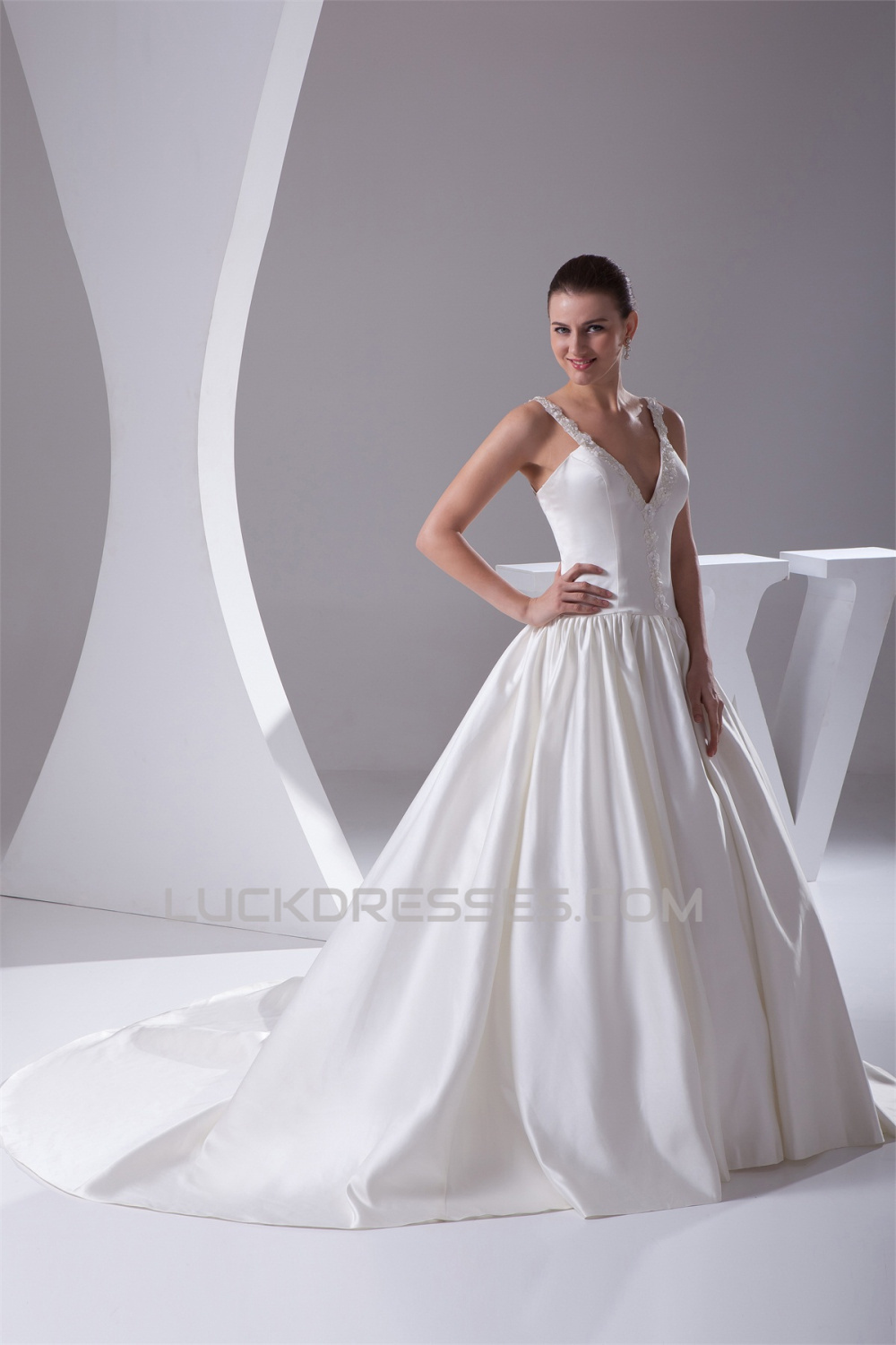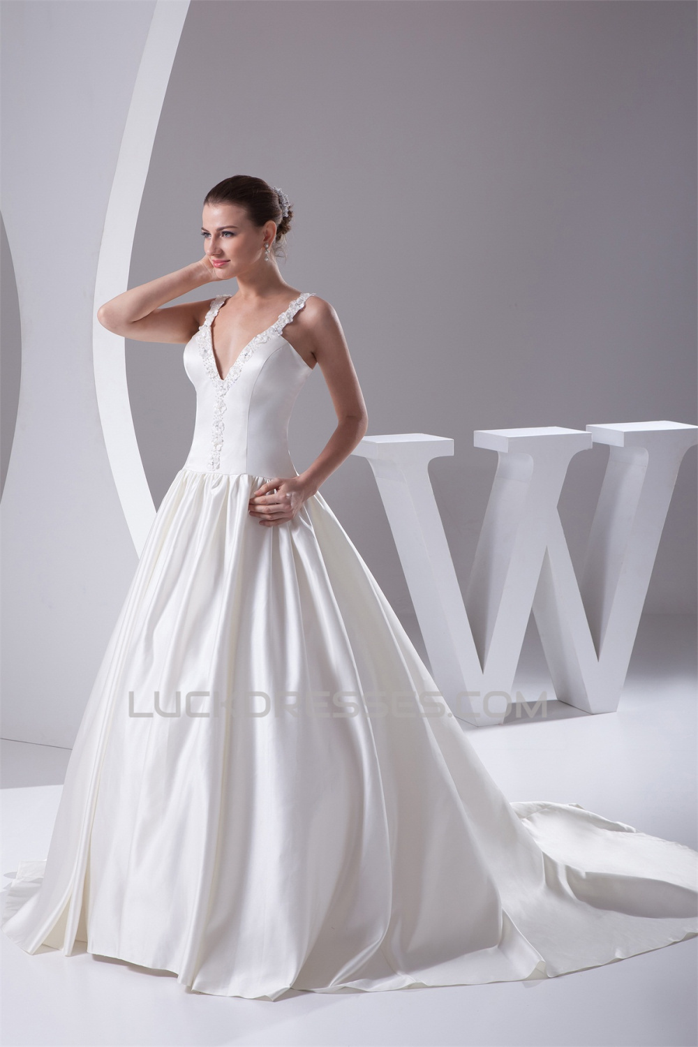 Hot Sale Sleeveless Satin Ball Gown V-Neck Beaded Wedding Dresses 2030179
