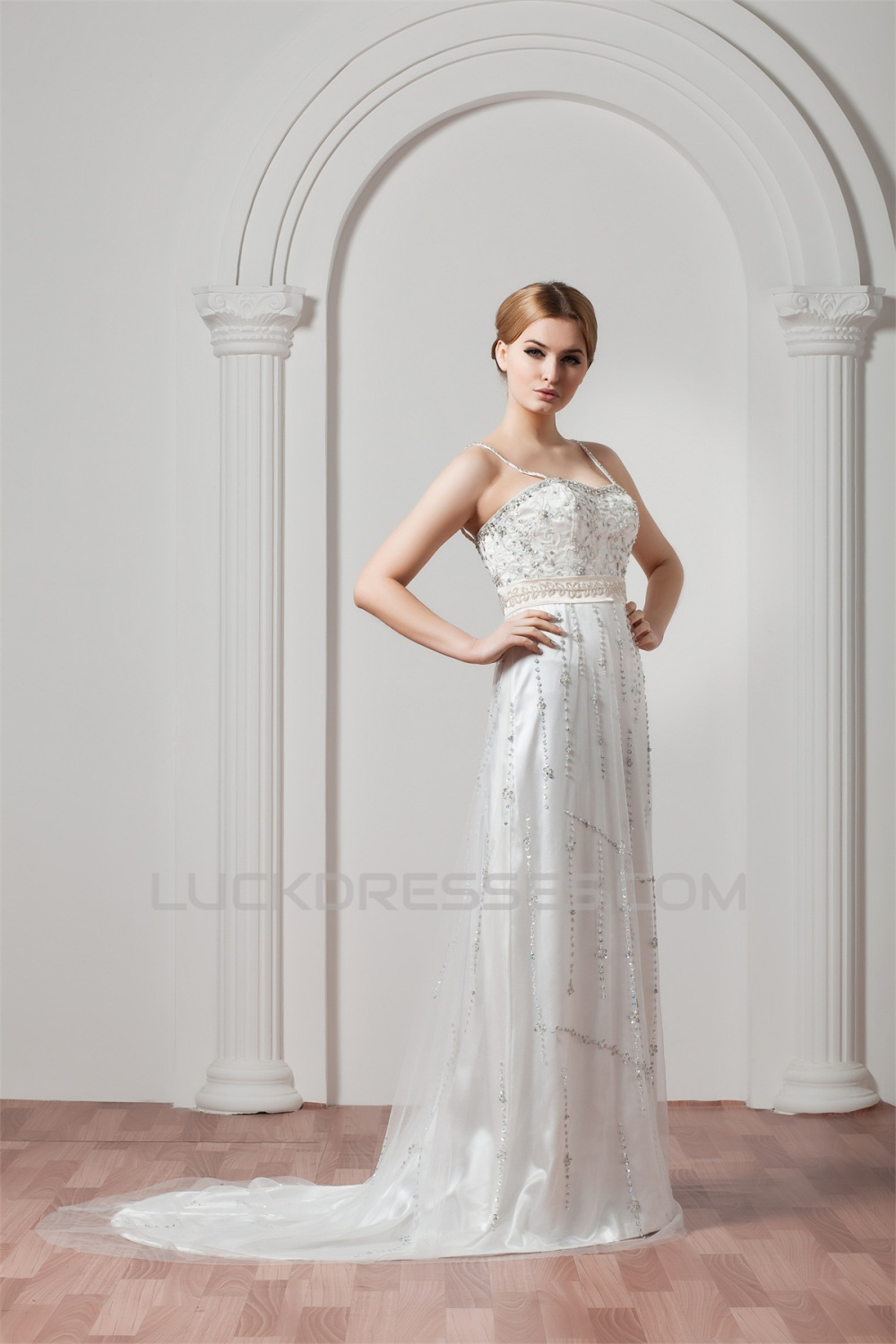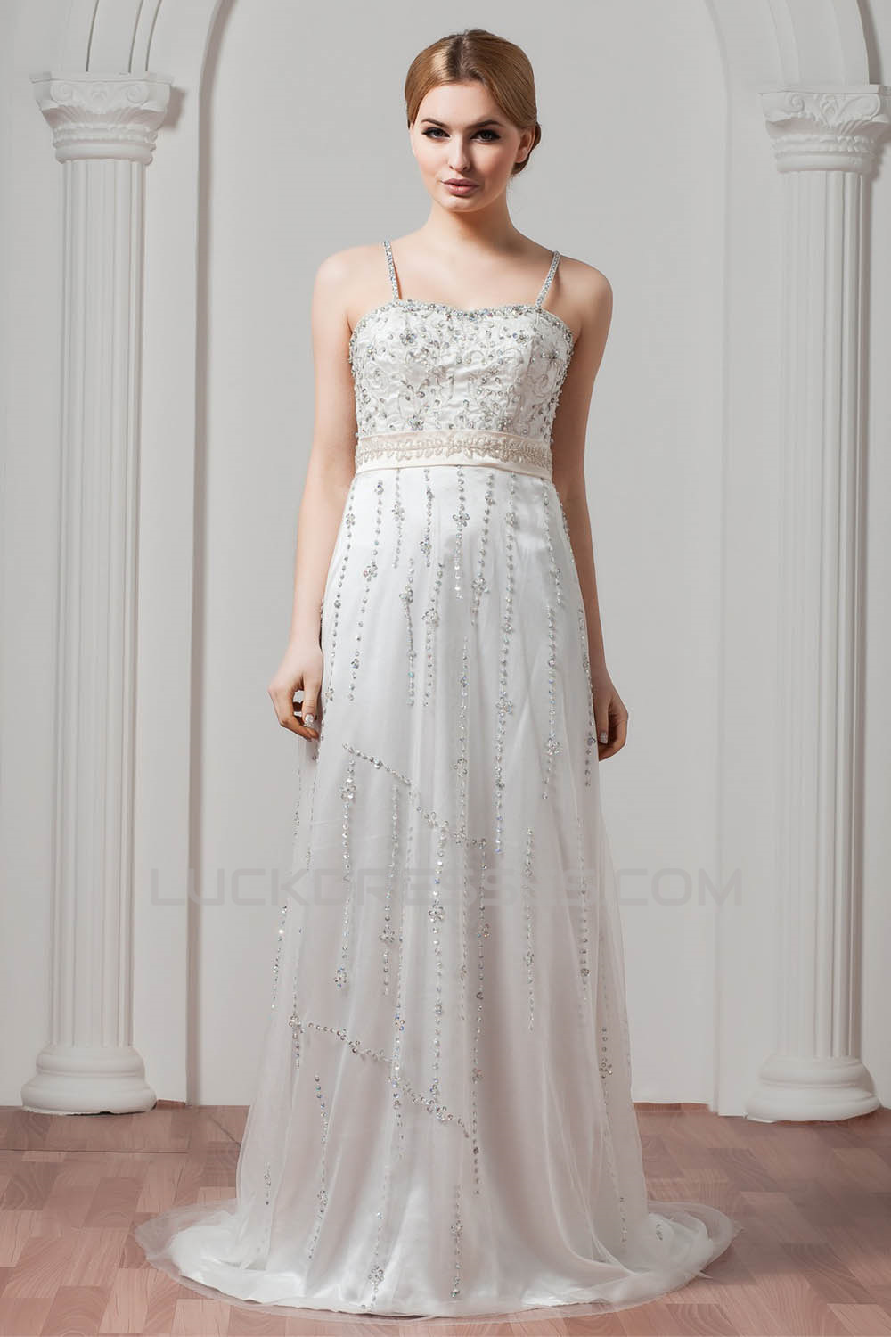 Hot Sale Spaghetti Straps Sleeveless Sheath/Column Beaded Sequin Wedding Dresses 2030751