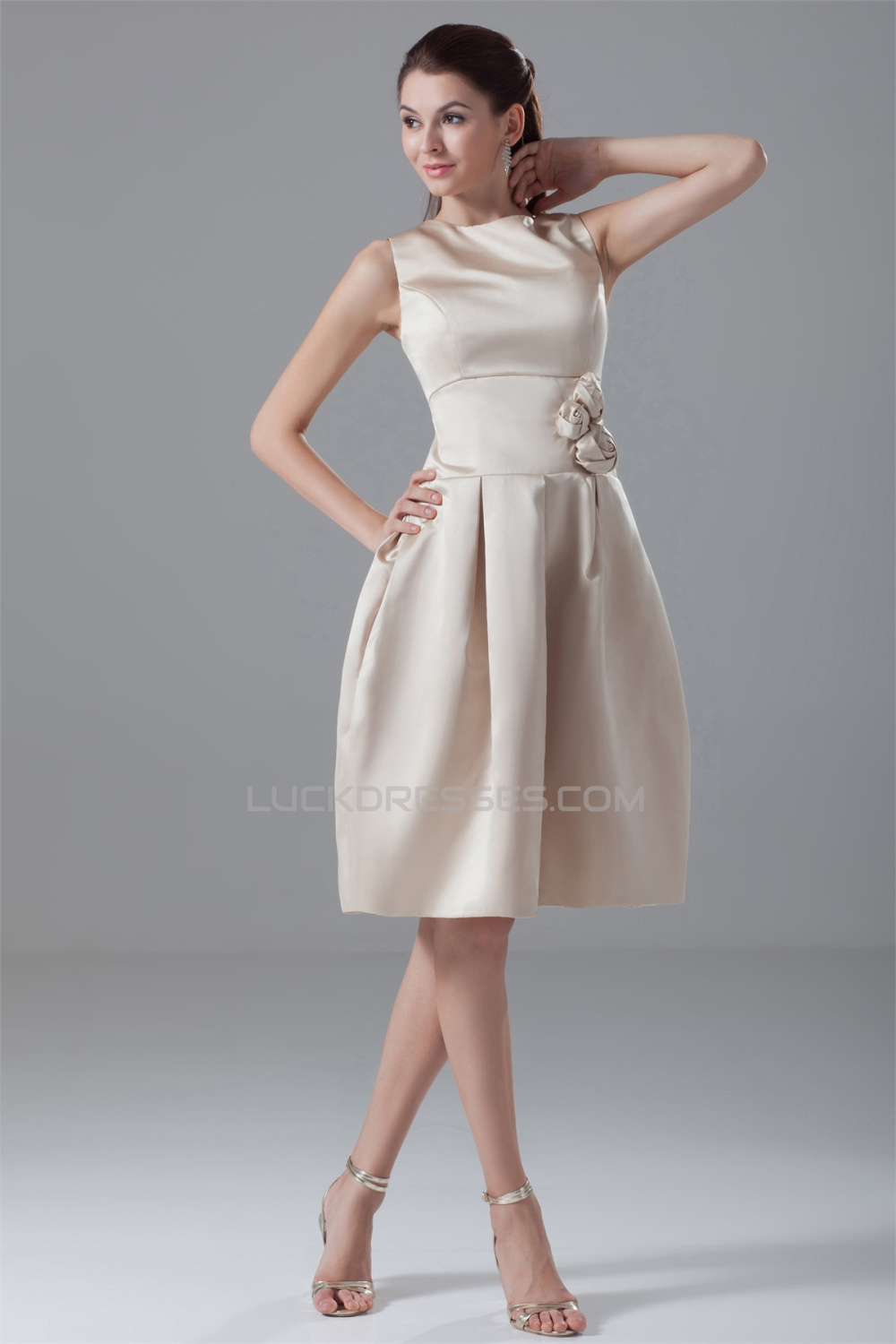 Knee-Length High-Neck A-Line Handmade Flowers Short Bridesmaid Dresses 02010491
