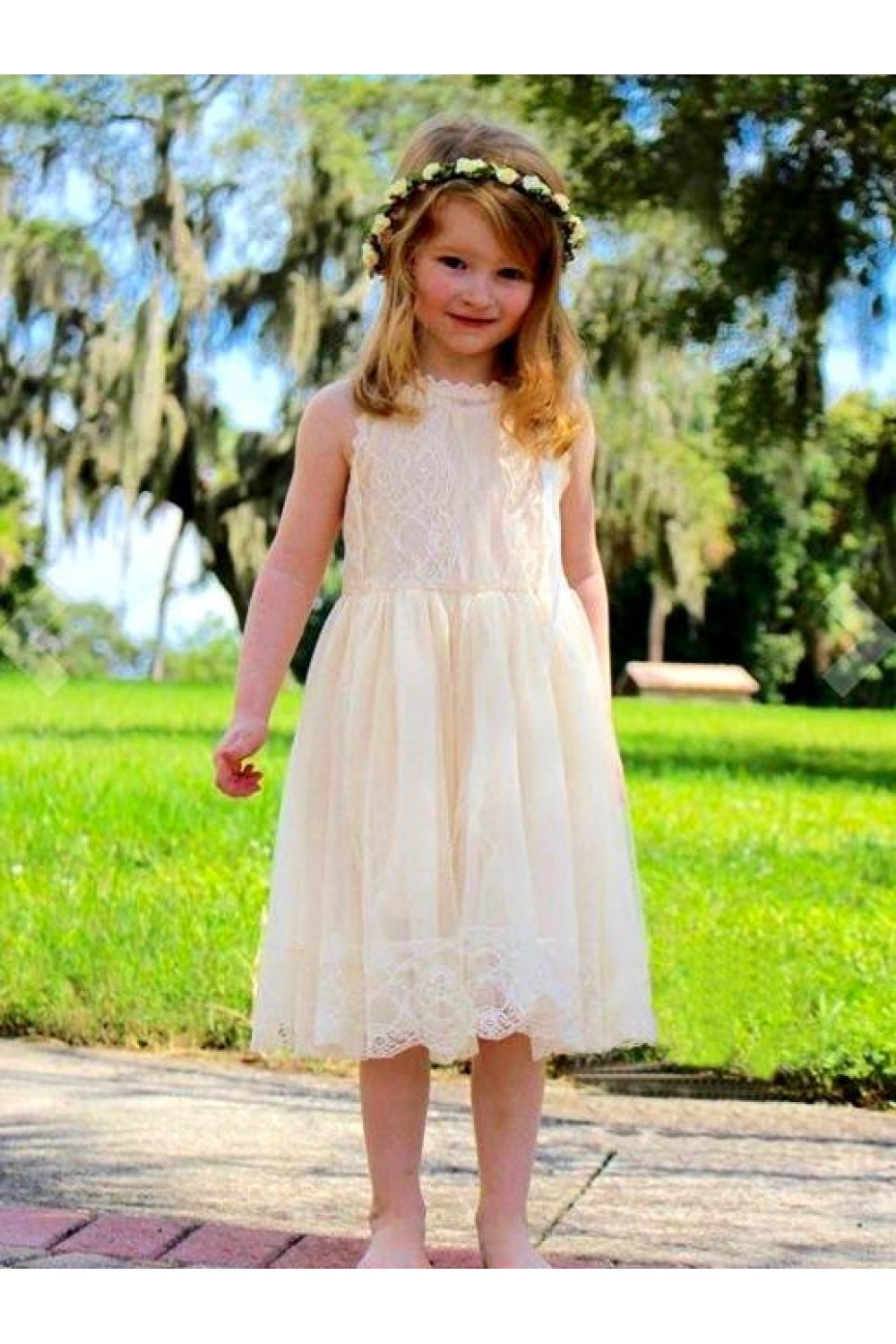 Knee Length Lace Flower Girl Dresses 905075