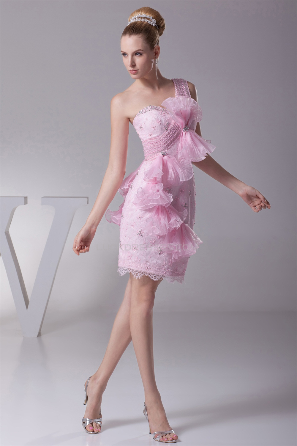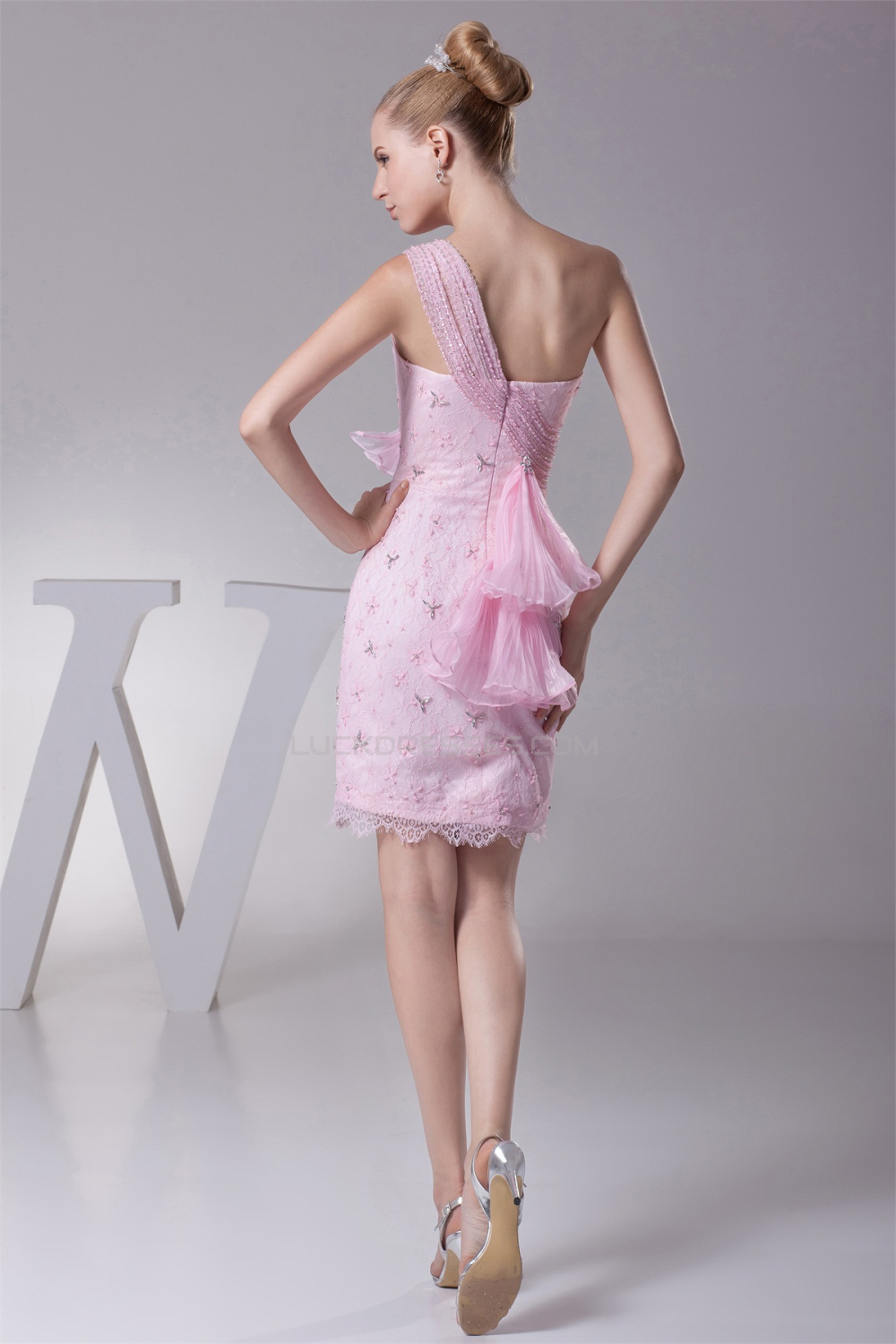 Knee-Length Sheath/Column Beading One-Shoulder Evening Party Dresses 02021087