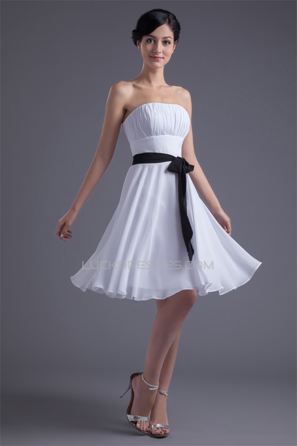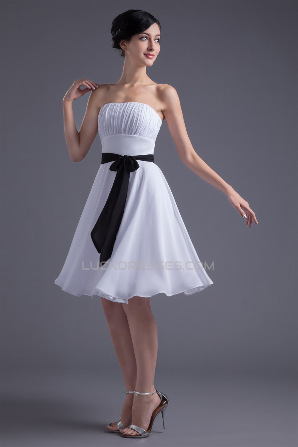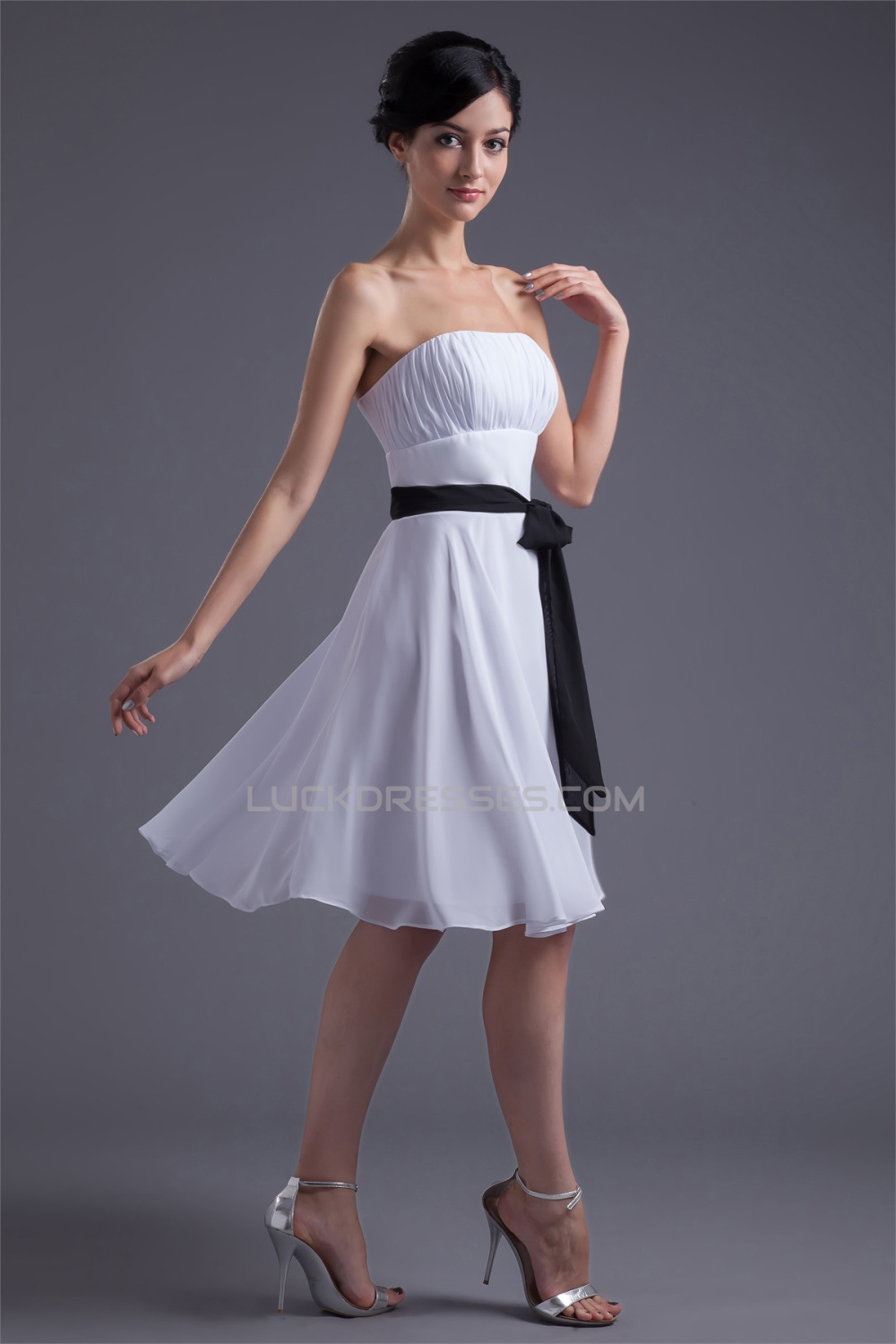 Knee-Length Strapless Sleeveless Chiffon Short White Bridesmaid Dresses 02010494