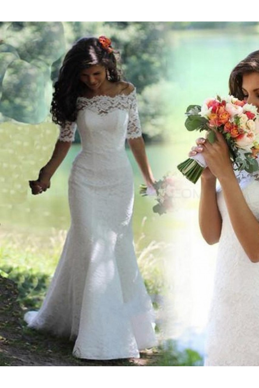 Lace Mermaid Off-the-Shoulder Short Sleeve Wedding Dresses Bridal Gowns 3030092