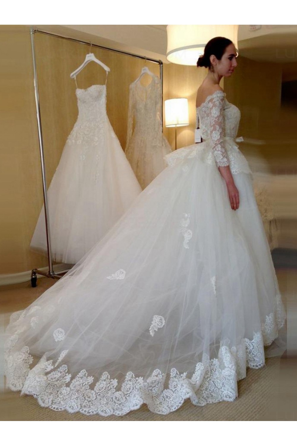 Lace Off-the-Shoulder Long Sleeves Wedding Dresses Bridal Gowns 3030257