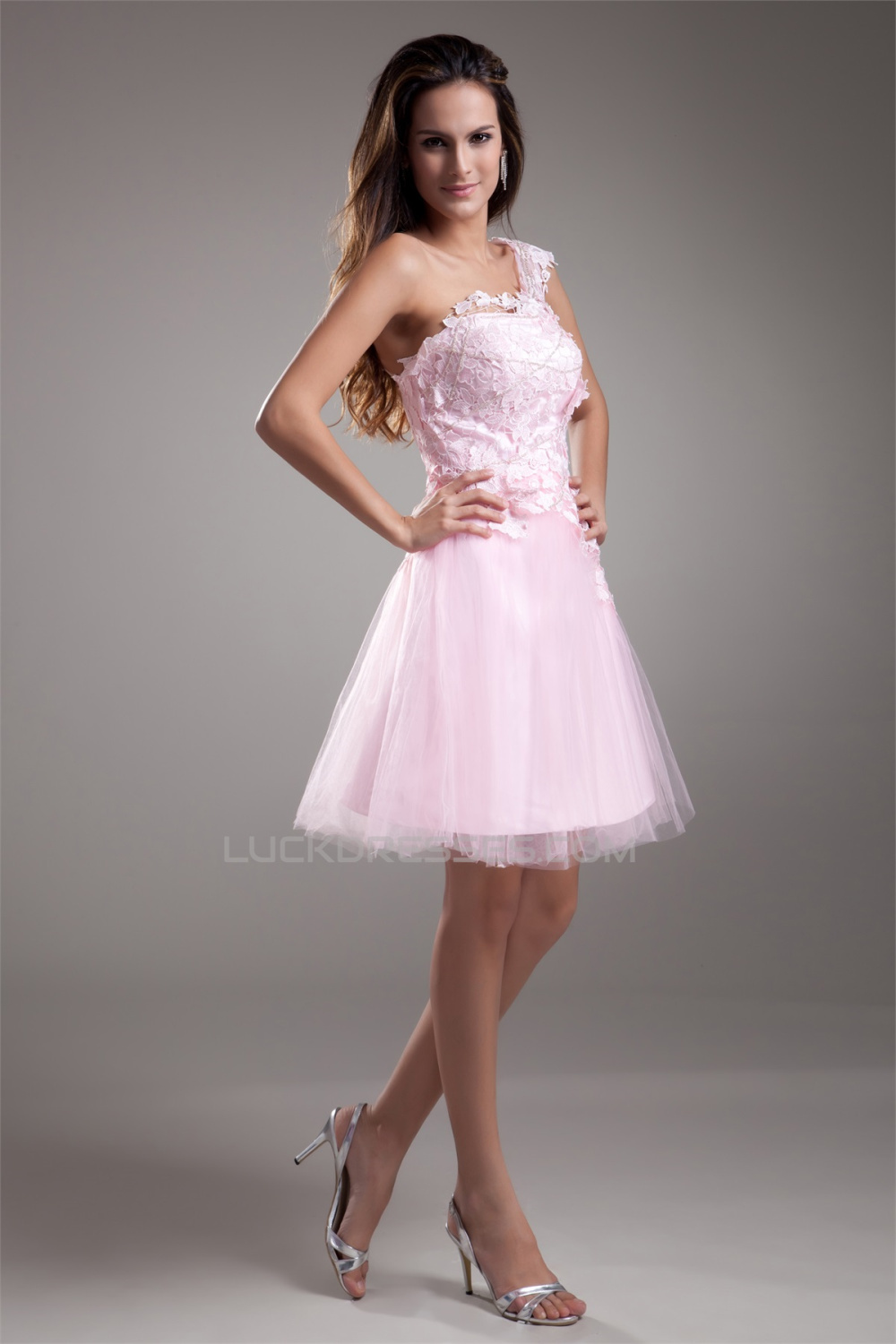 -60% Lace Short/Mini One-Shoulder Prom Evening Cocktail Homecoming Dresses 02021474