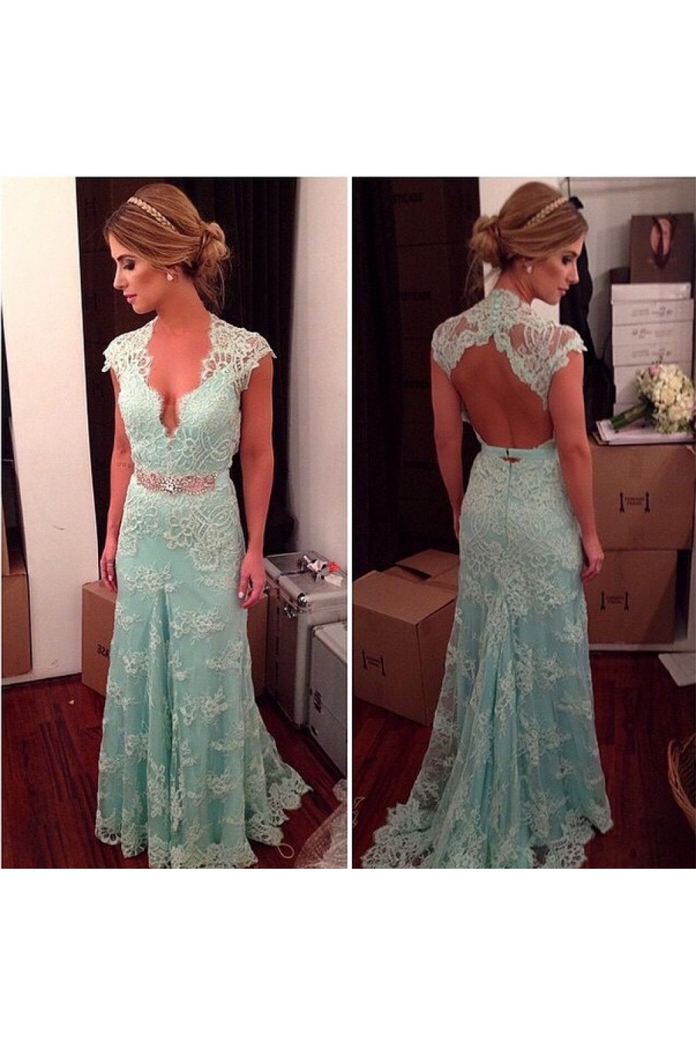 Lace V-Neck Long Mother of The Bride and Groom Dresses 602040