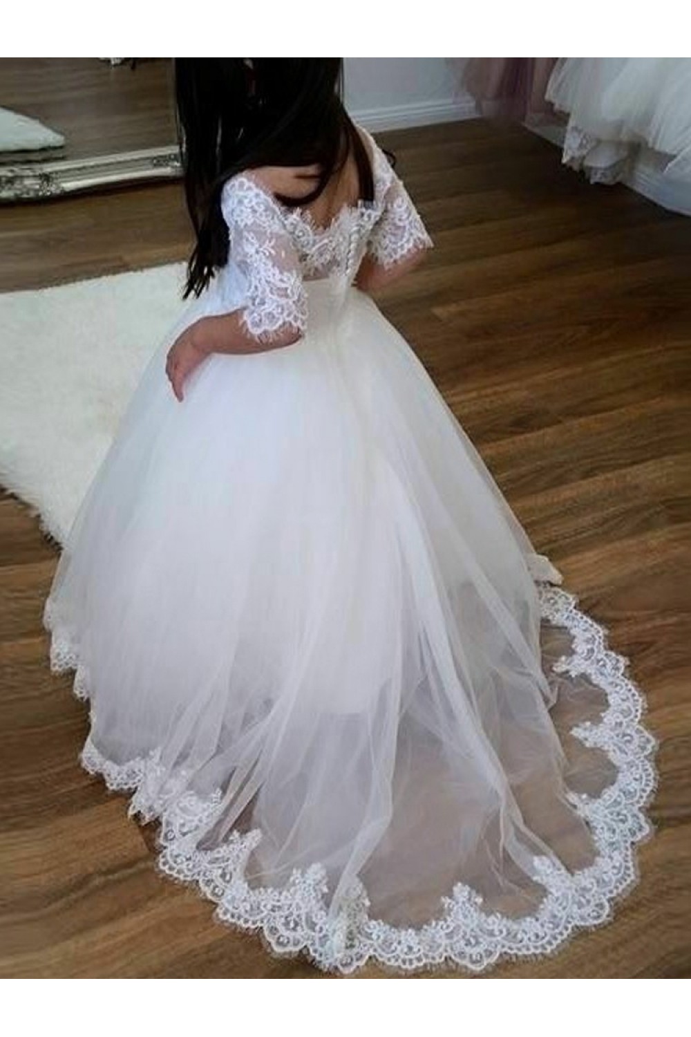Lace and Tulle Floor Length Flower Girl Dresses 905060