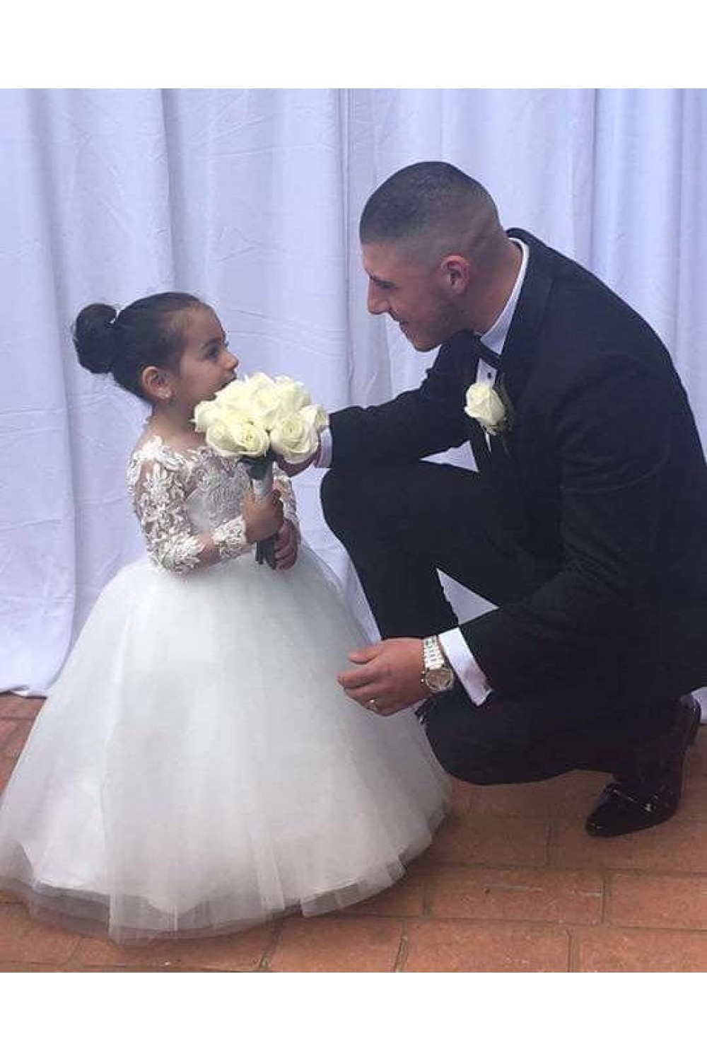 Lace and Tulle Long Sleeves Floor-Length Flower Girl Dresses 905002
