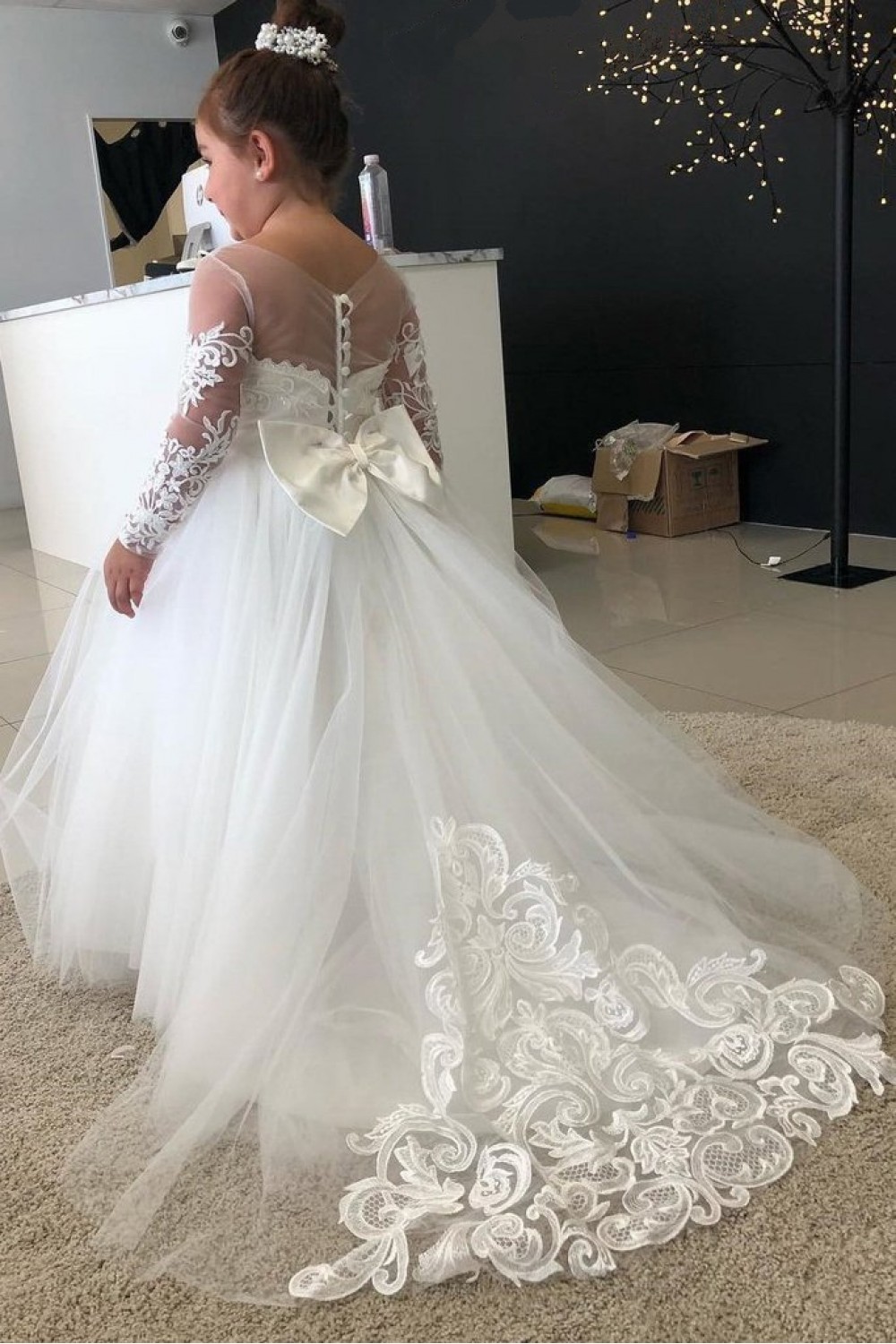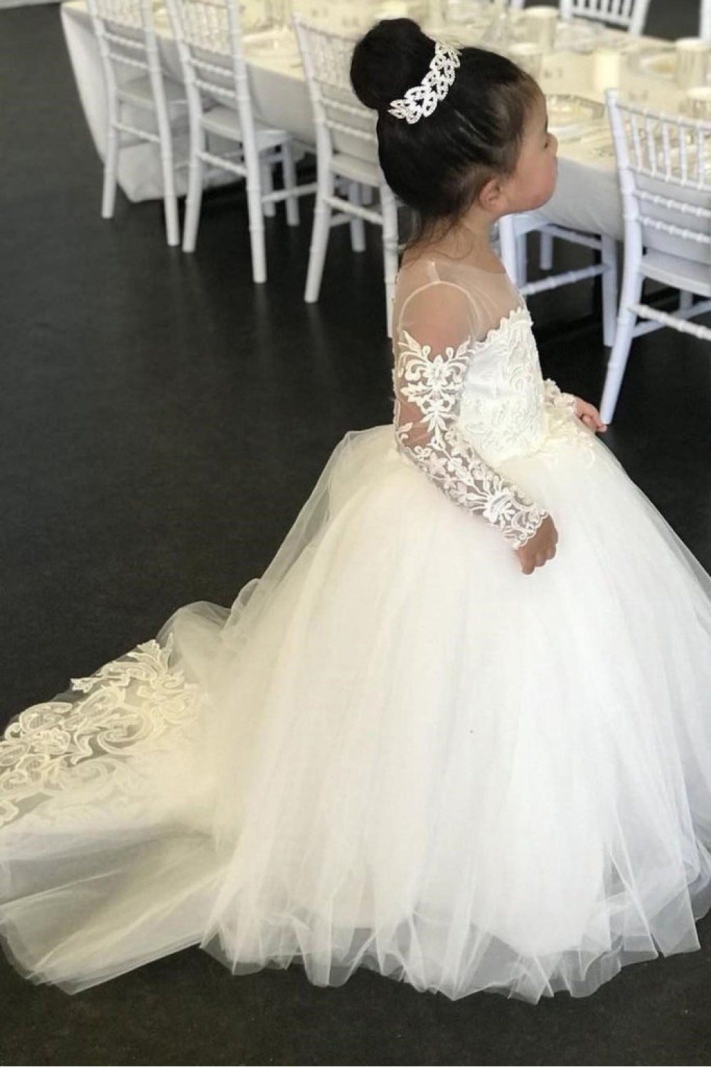 Lace and Tulle Long Sleeves Flower Girl Dresses 905047