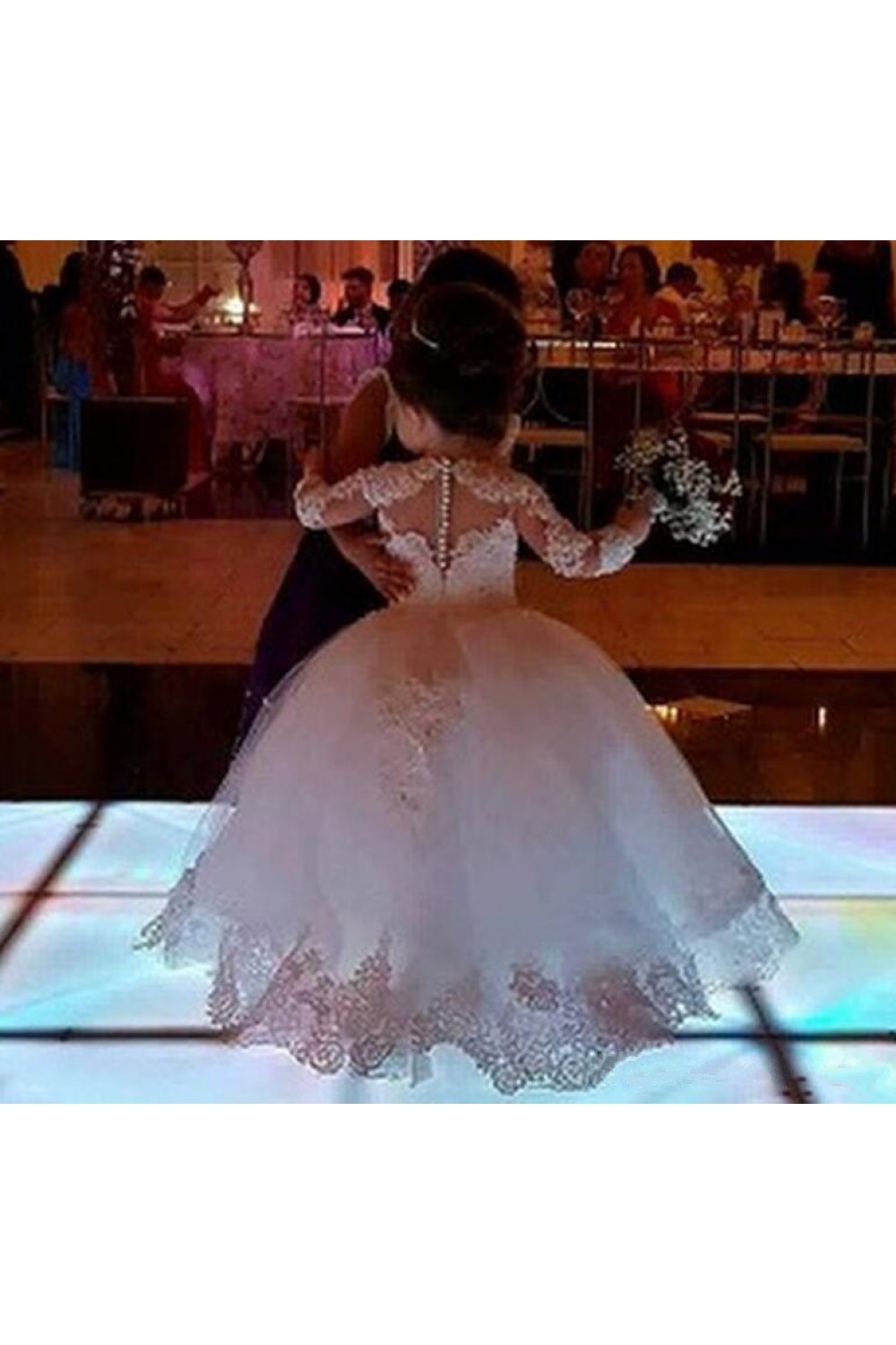 Lace and Tulle Long Sleeves Flower Girl Dresses 905084