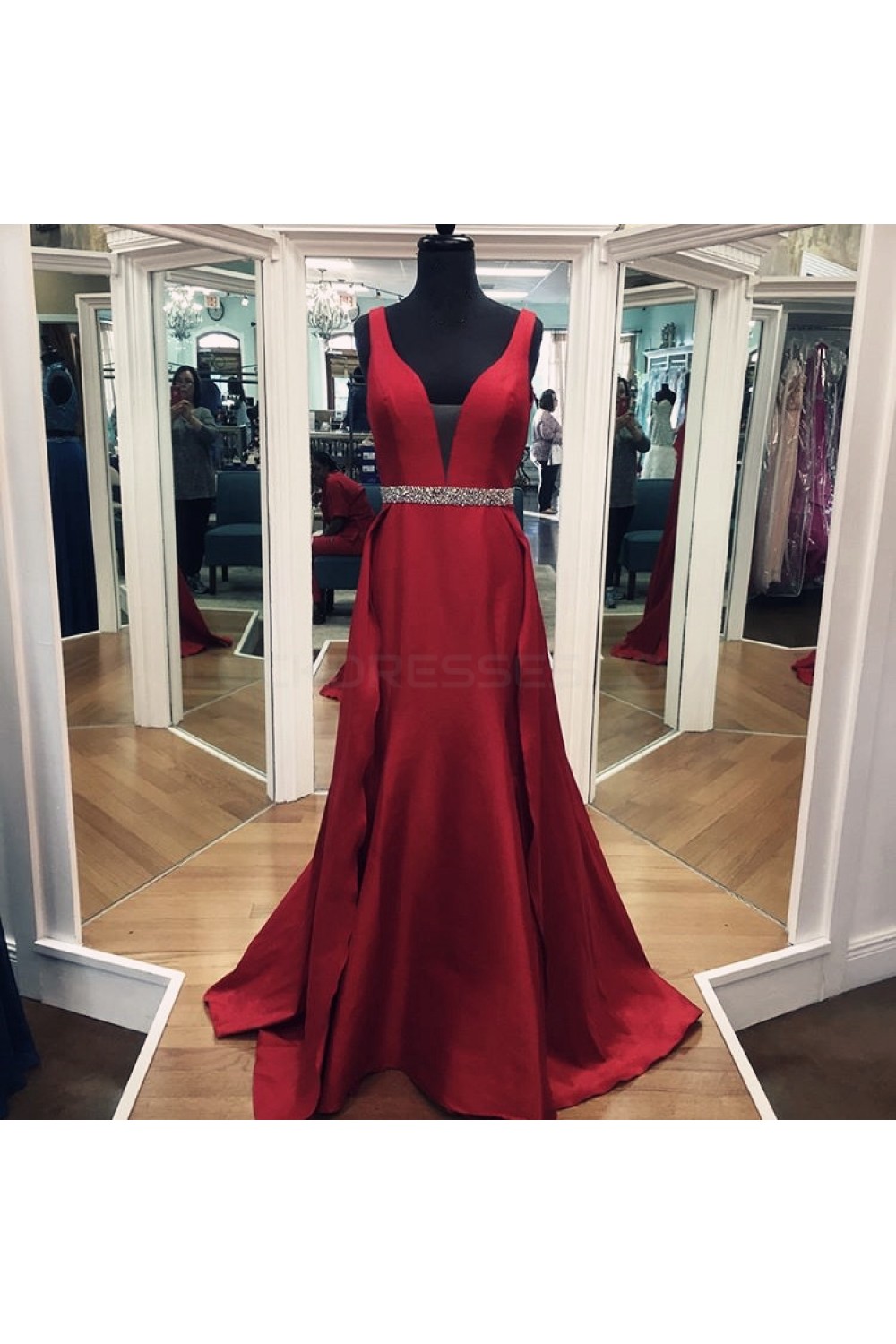 Long Beaded V-Neck Prom Formal Evening Party Dresses 3021439