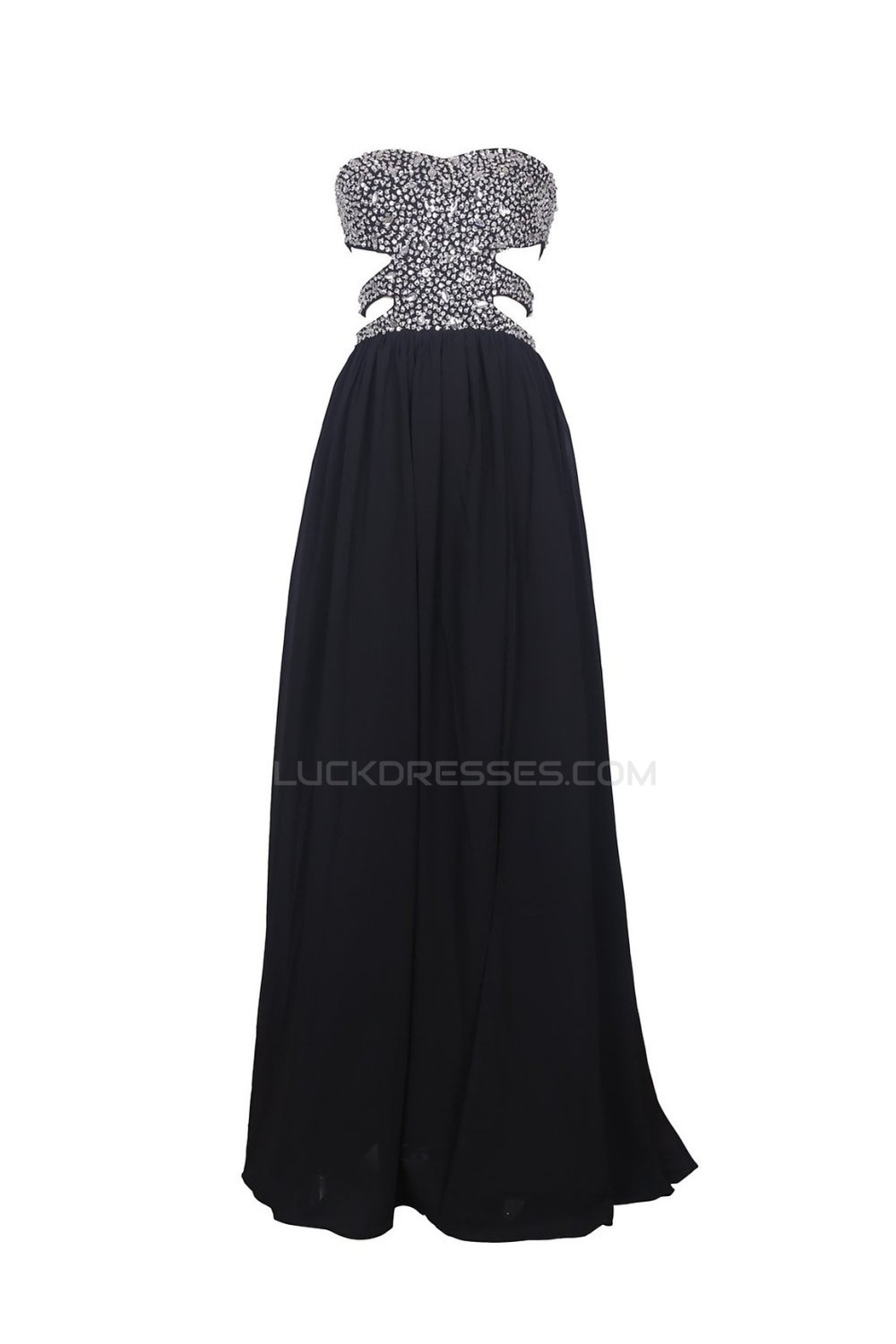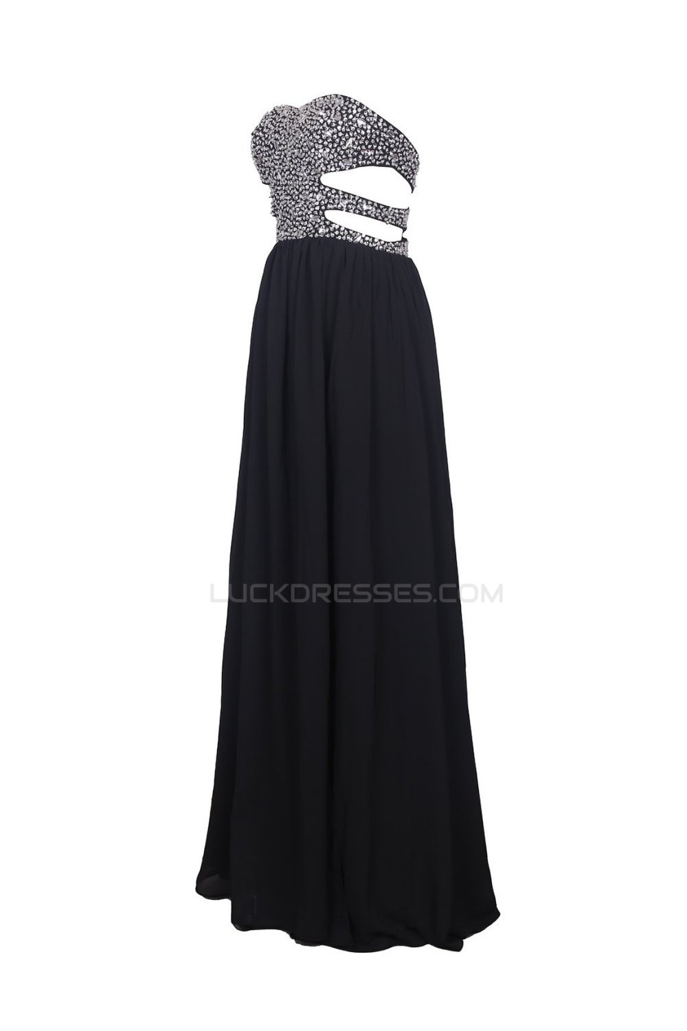 Long Black Beaded Chiffon Prom Evening Formal Party Dresses ED010375
