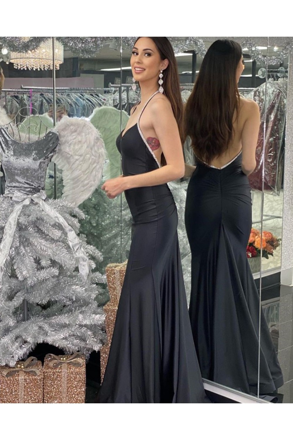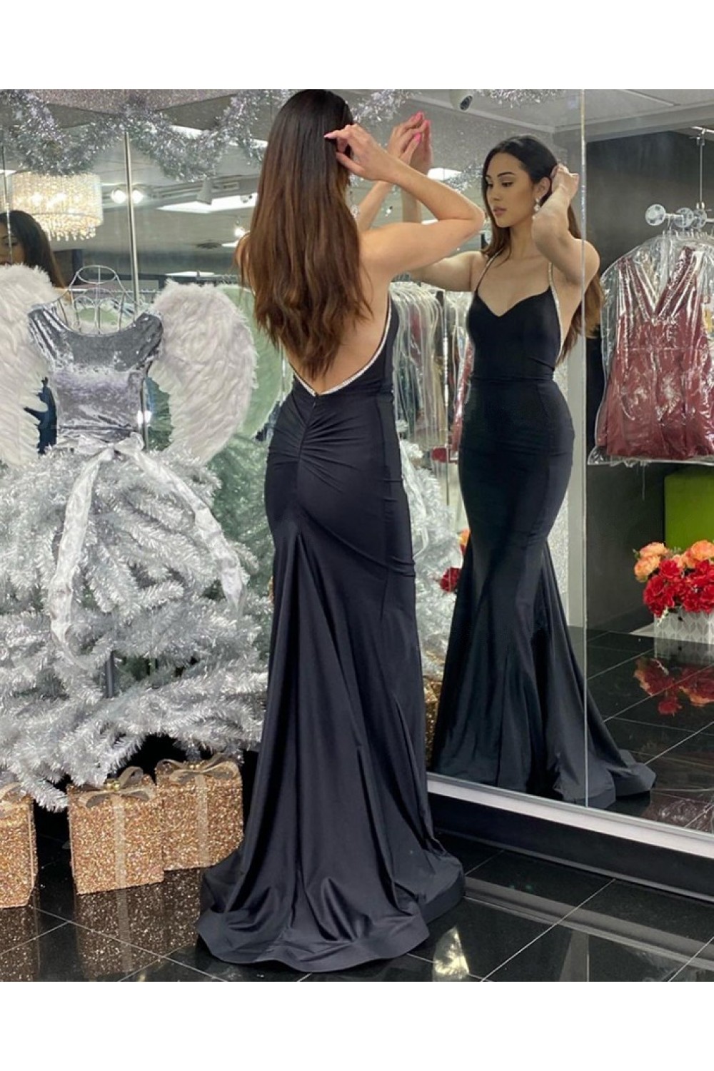 Long Black Mermaid Prom Dresses Formal Evening Gowns 901569