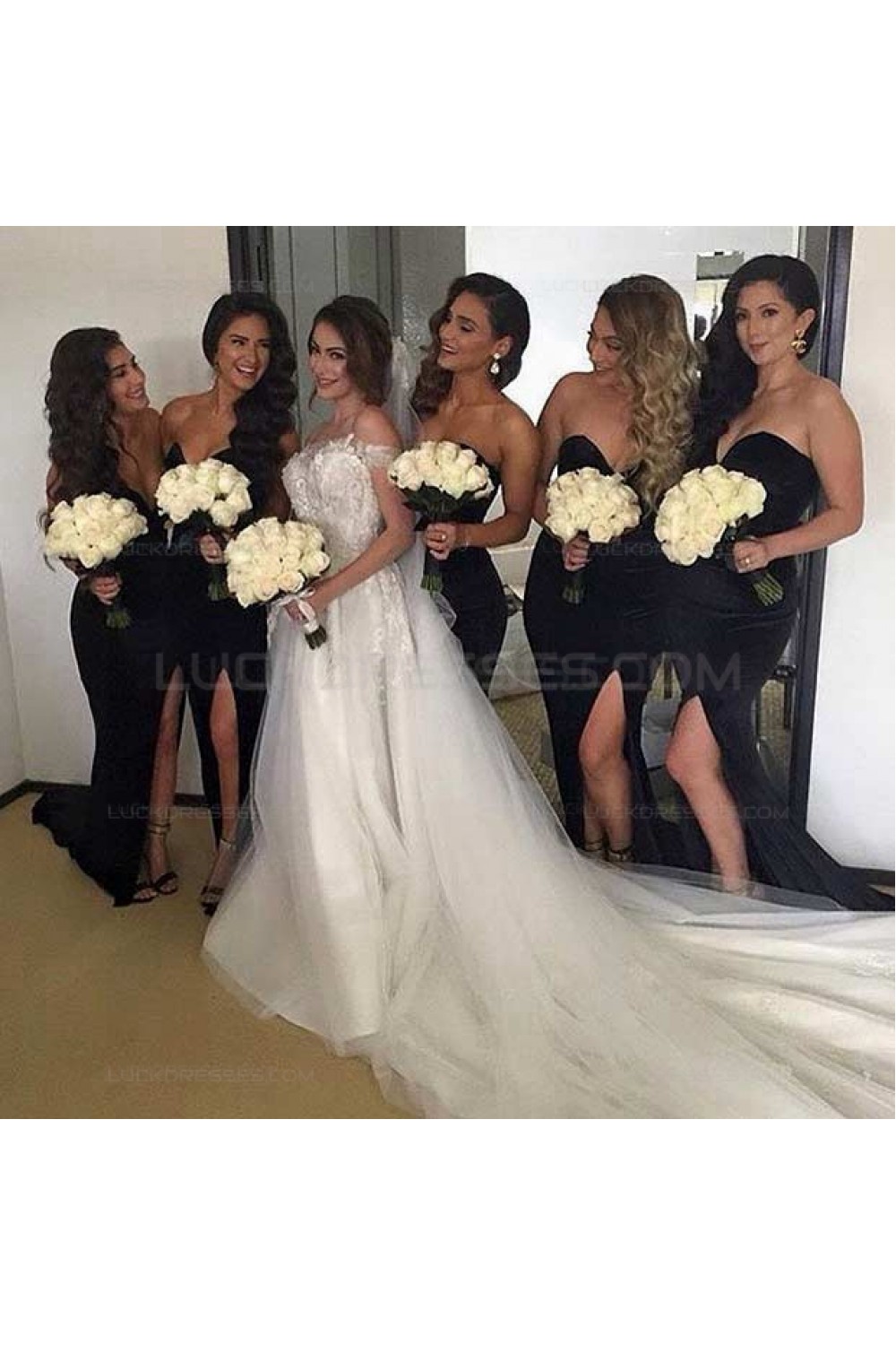 Long Black Side Slit Wedding Guest Dresses Bridesmaid Dresses 3010233