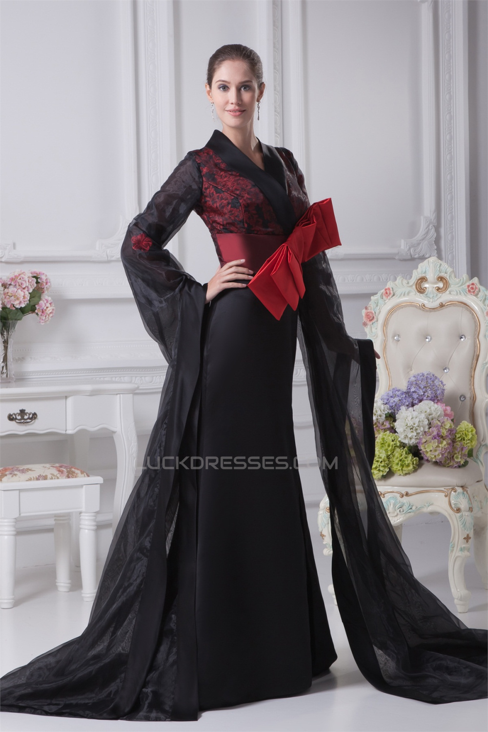 Long Black V-Neck Bows Prom/Formal Evening Dresses 02020276