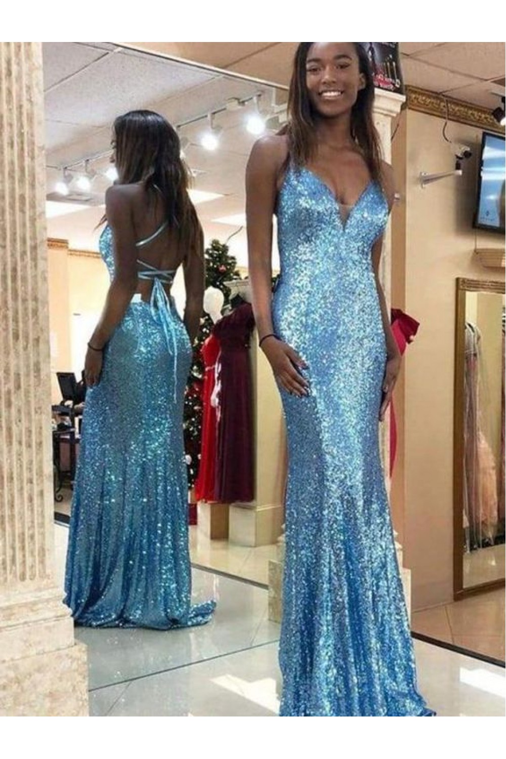 Long Blue Sequin Prom Dress Formal Evening Gowns 901475