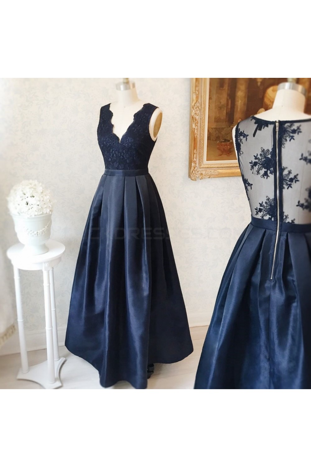 Long Blue V-Neck Lace Prom Formal Evening Party Dresses 3021266