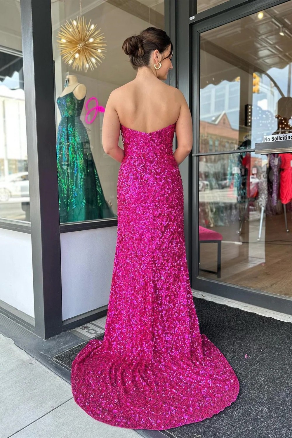 -60% Long Fuchsia Sequins Prom Dresses 801048
