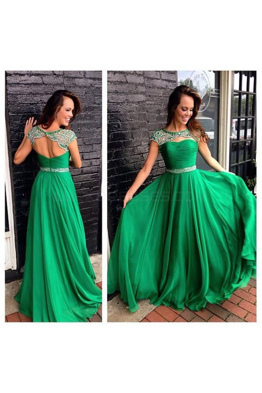 Long Green Beaded Chiffon Prom Formal Evening Party Dresses 3021105