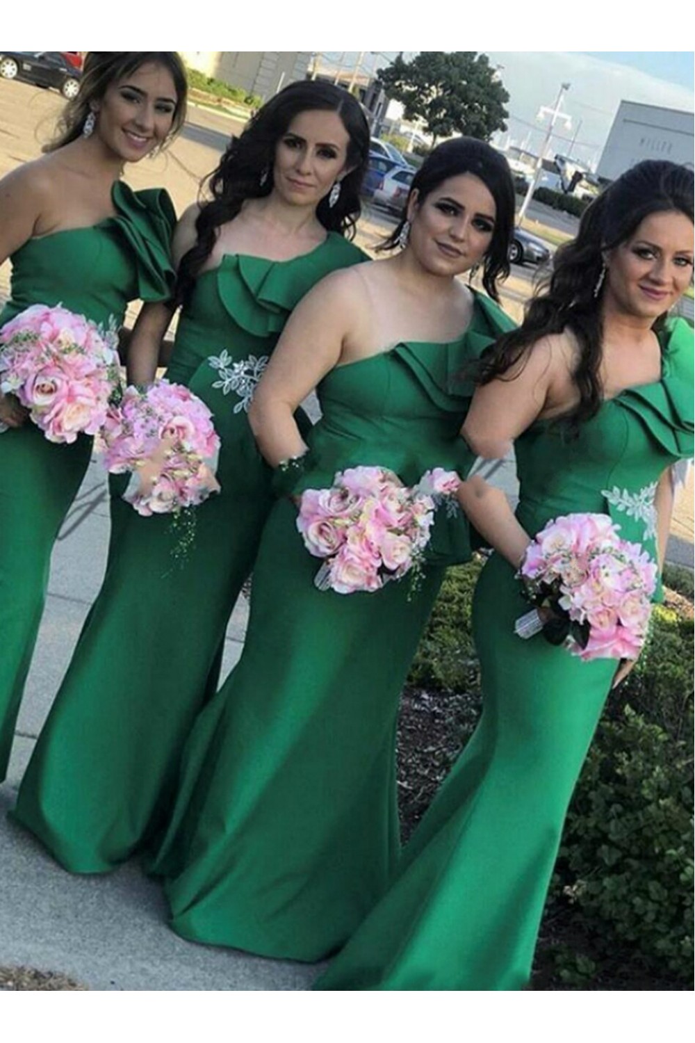 Long Green Mermaid One Shoulder Bridesmaid Dresses 902322