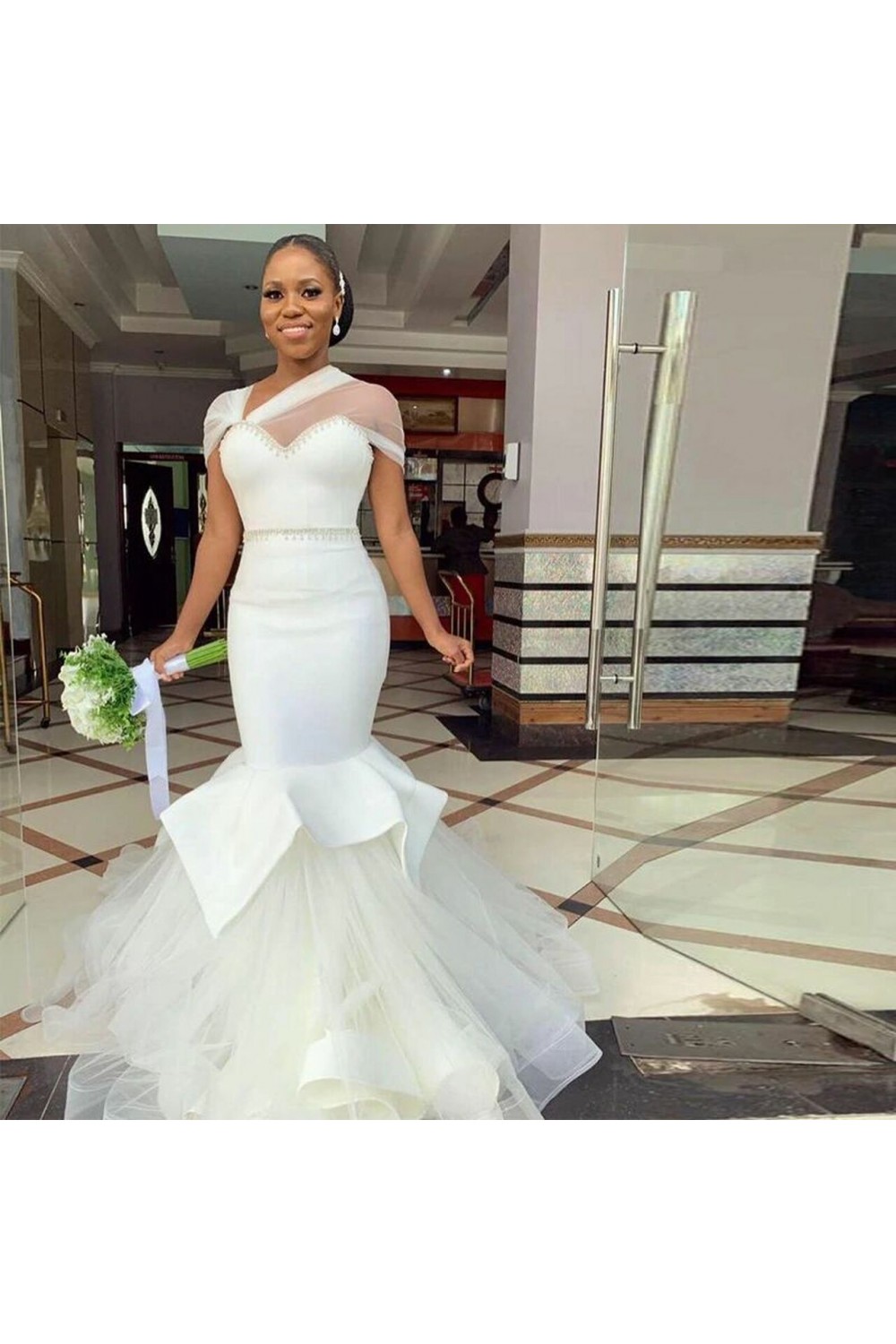 Long Mermaid Beaded Tulle Wedding Dresses Bridal Gowns 903392