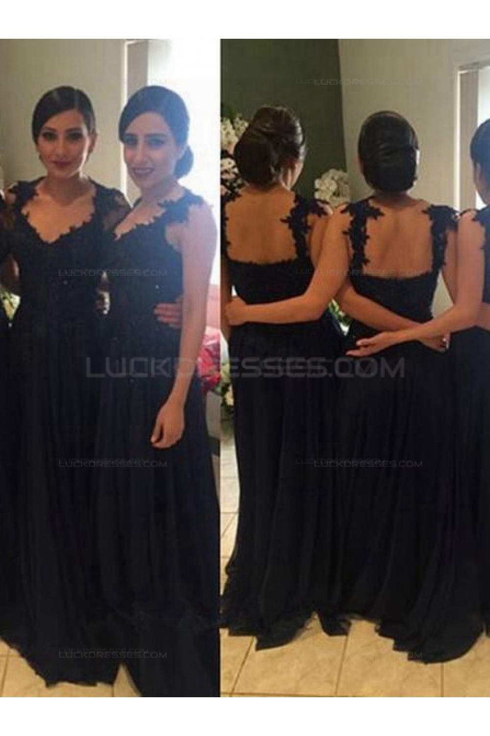 Long Navy Blue Lace Straps Sleeveless Wedding Party Dresses Bridesmaid Dresses 3010080