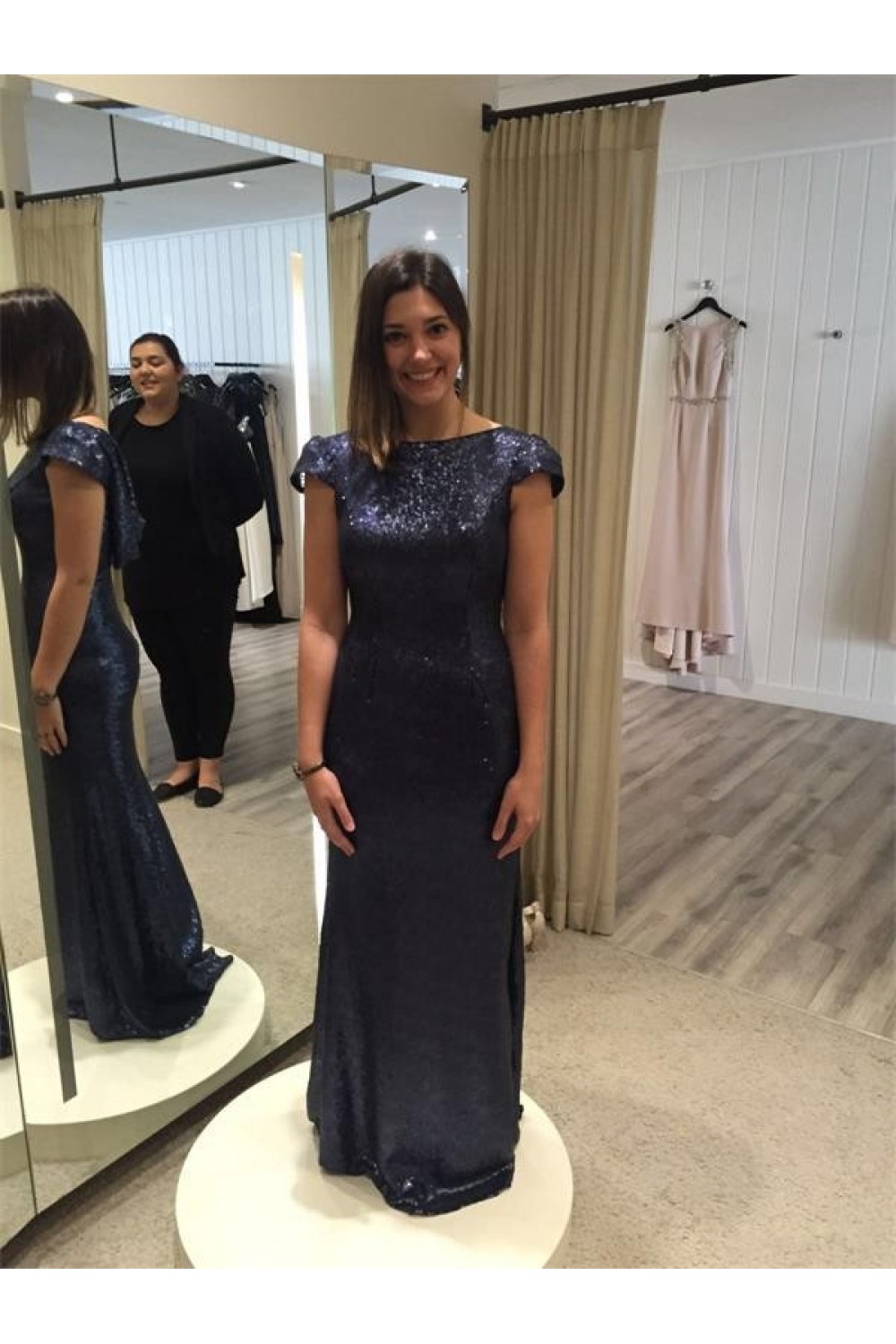 Long Navy Blue Sequin Bridesmaid Dresses 902457