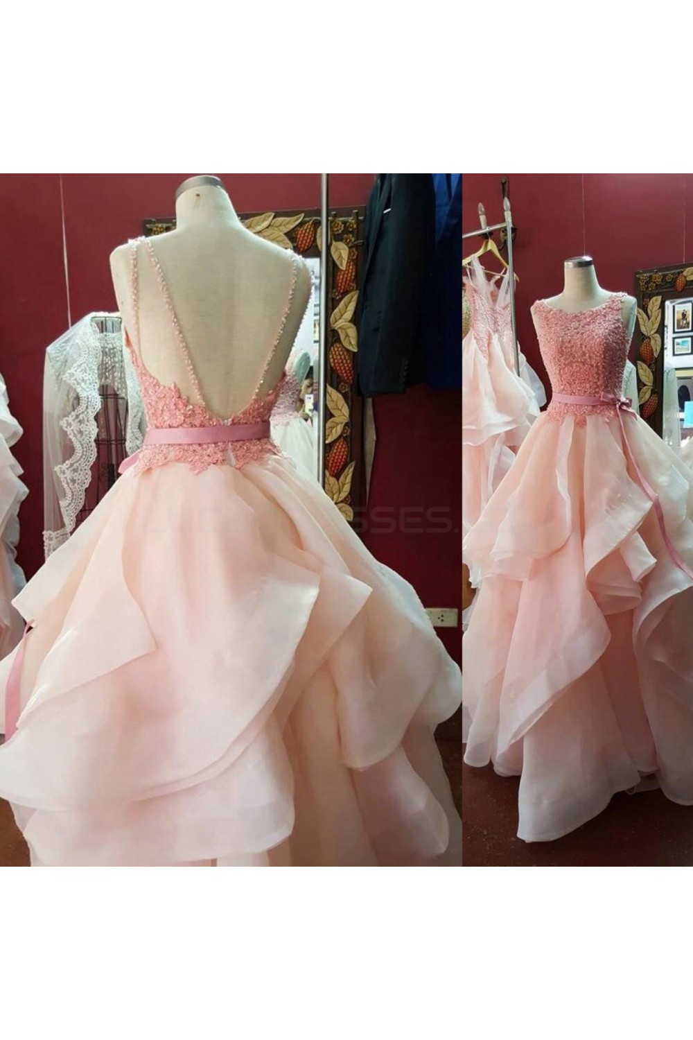 Long Pink Beaded Lace Prom Formal Evening Party Dresses 3021187
