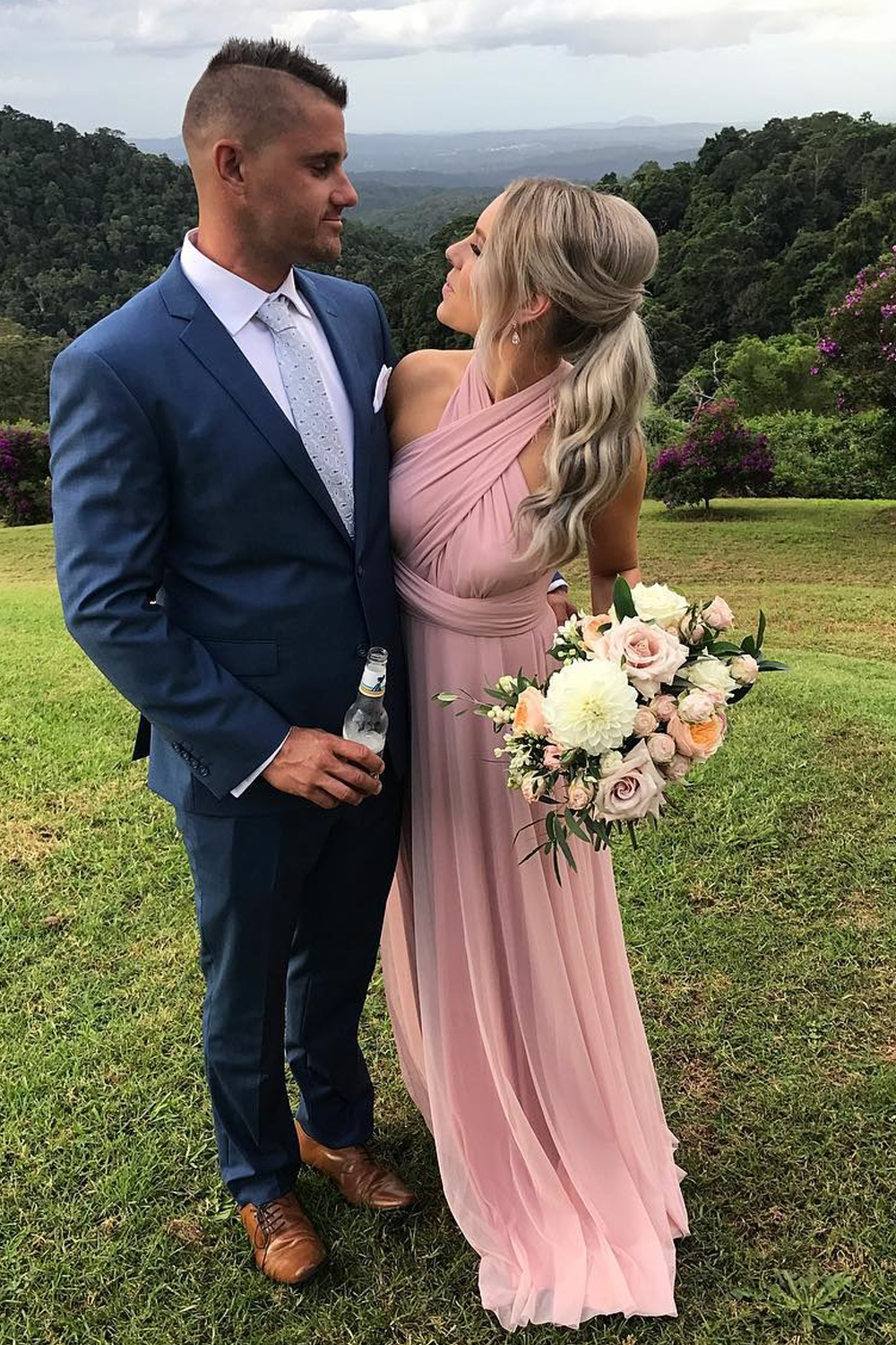 Long Pink Chiffon Floor Length Bridesmaid Dresses 902052