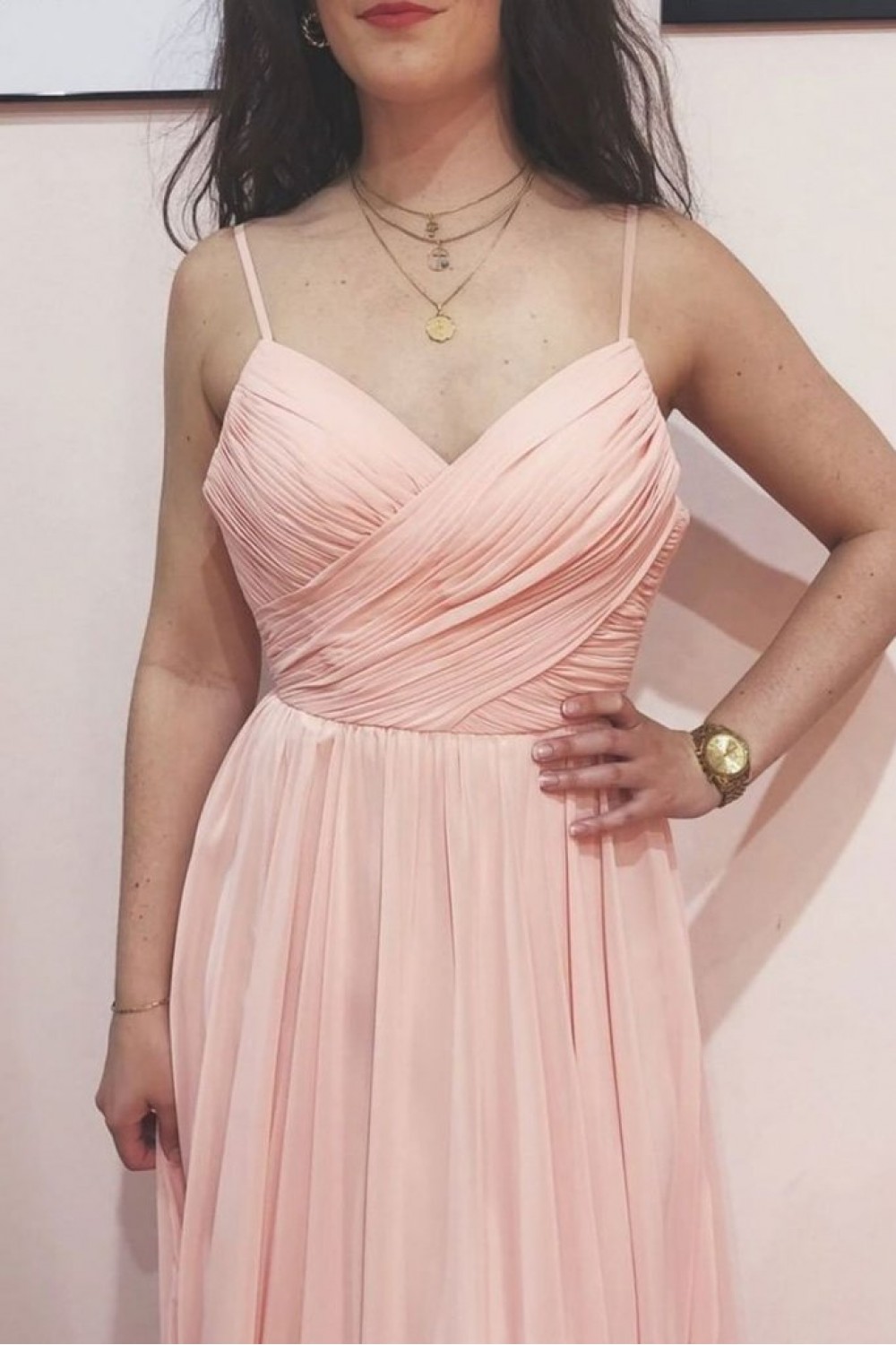 Long Pink Chiffon Spaghetti Straps Bridesmaid Dresses 902481