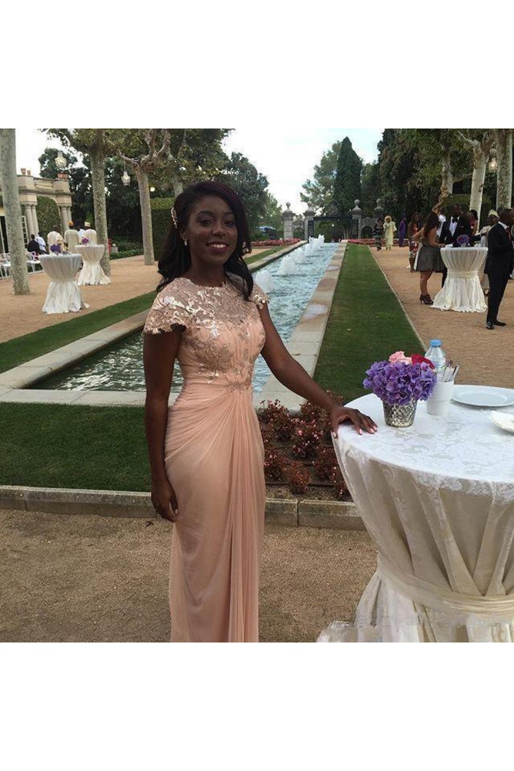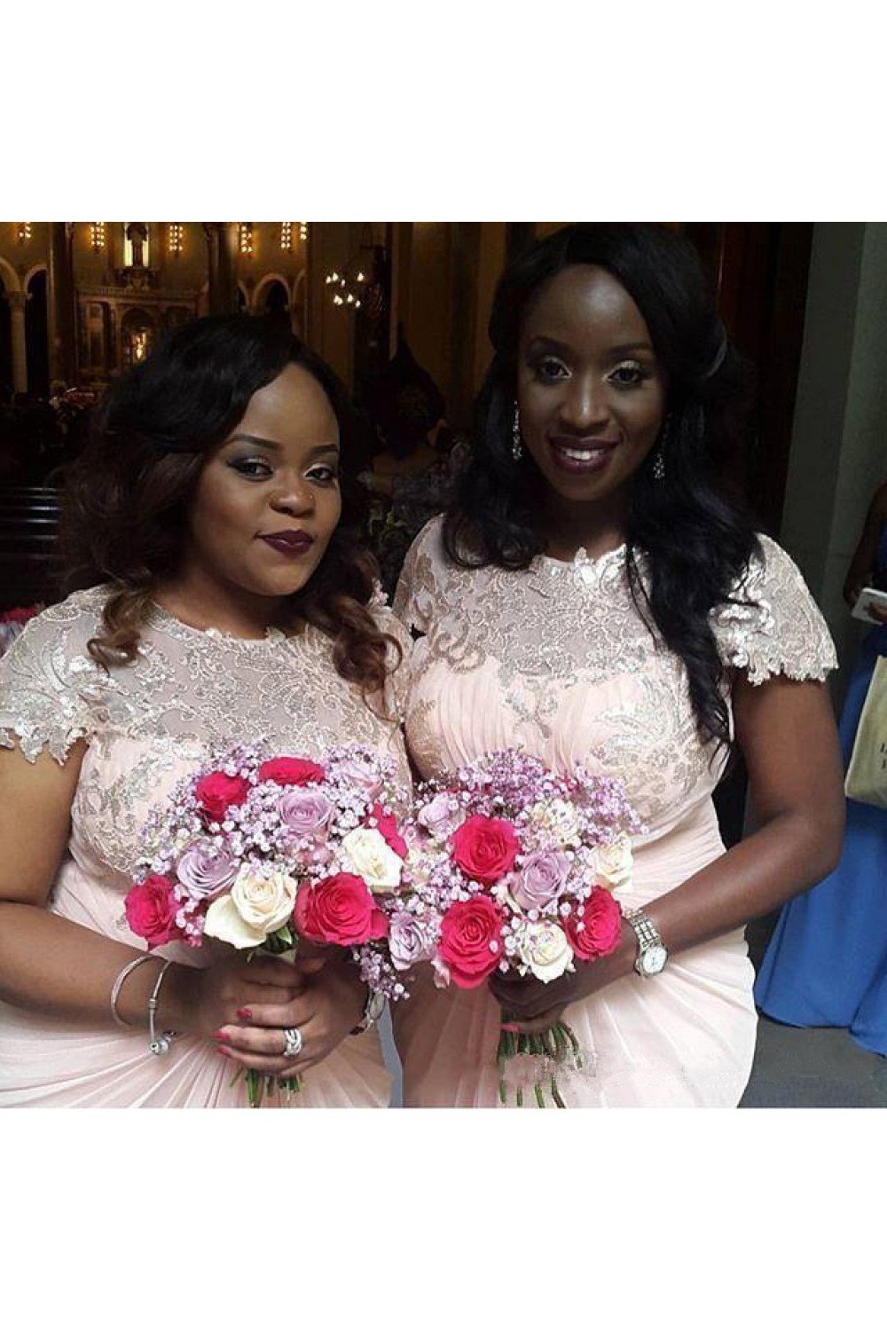 Long Pink Chiffon and Lace Bridesmaid Dresses 902426