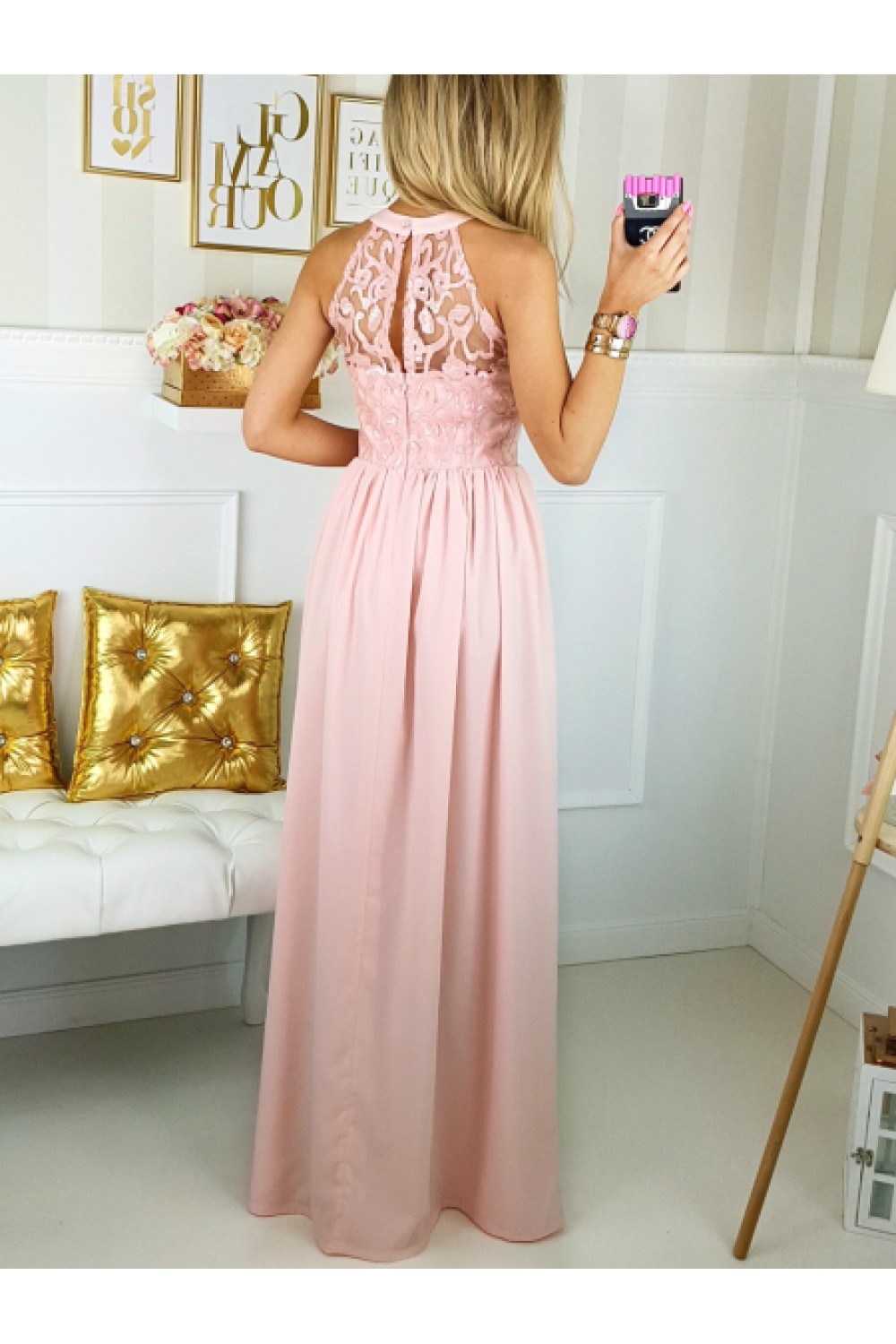 Long Pink Lace Chiffon Prom Dresses Formal Evening Dresses 601064
