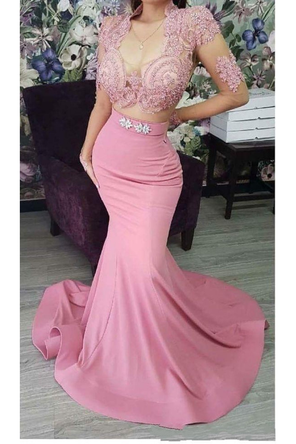 Long Pink Lace Mermaid Bridesmaid Dresses 902410