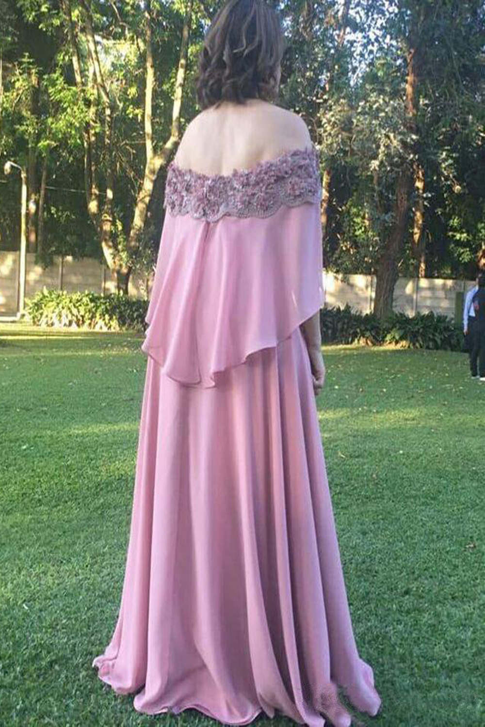 Long Pink Lace Off the Shoulder Mother of the Bride Dresses 702136