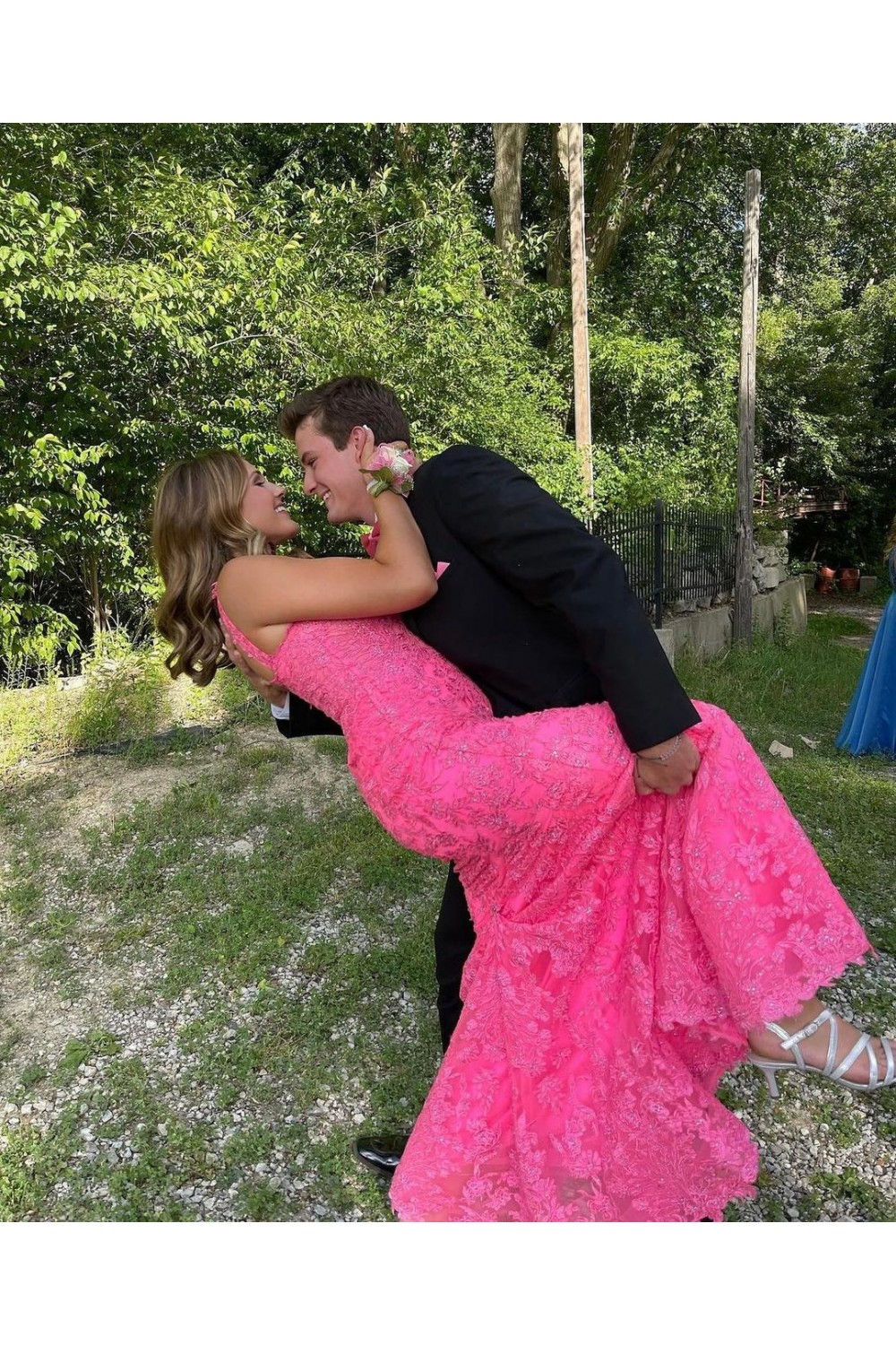 Long Pink Lace Prom Dress Formal Evening Gowns 901473