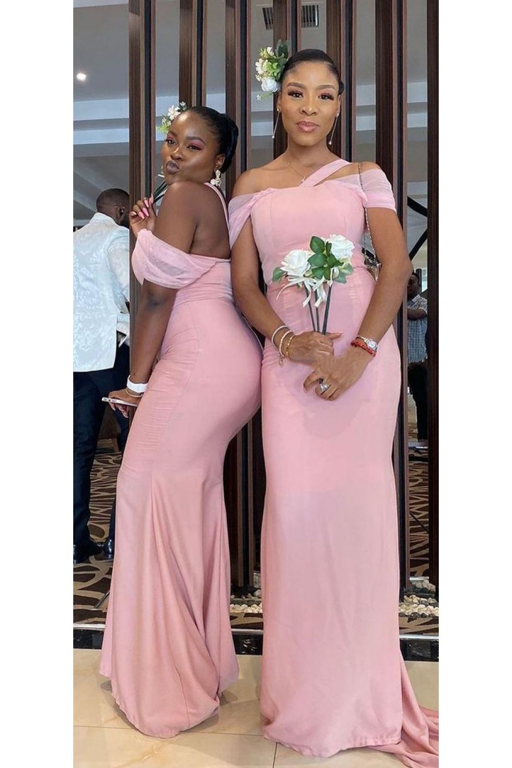Long Pink Mermaid Chiffon Floor Length Bridesmaid Dresses 902213