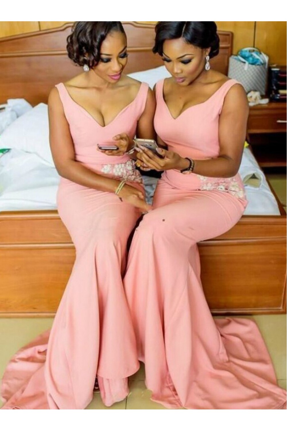 Long Pink Mermaid Floor Length Bridesmaid Dresses with Slit 902179